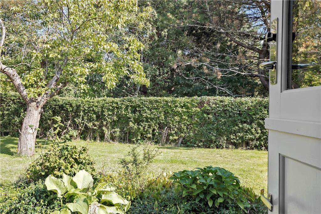 Huset har en 819 m2 grund med en skøn fliseterrasse hvor der er opsat læhegn, samt at der er et afsnit som er overdækket. Ved huset er der udendørs bruser (dog kun med koldt vand) havemøbler, parasol, grill og 2 cykler til rådighed