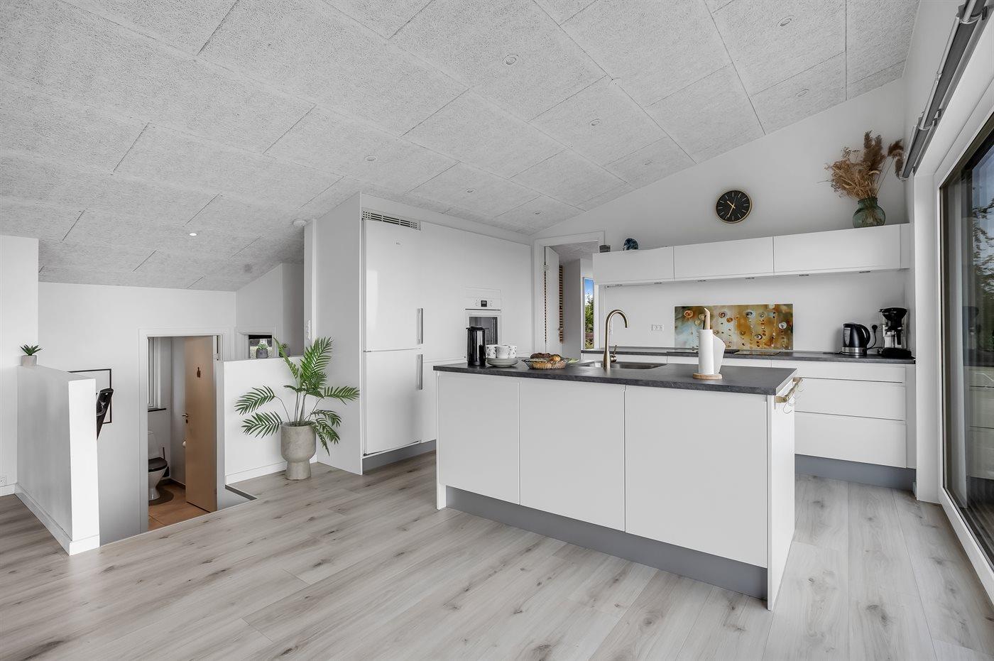 Køkkenet er udstyret med 1 køleskab. Der er 4 induktionskogeplader, varmluftovn, mikrobølgeovn samt opvaskemaskine.