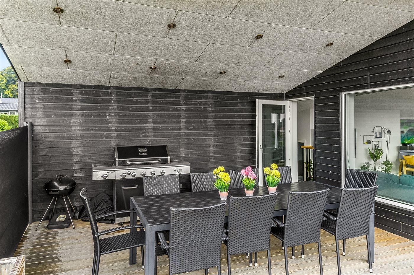 I det attraktive sommerhusområde ved Binderup Strand finder I dette moderne sommerhus opført i sommeren 2022, hvor arkitektur og placering tilsammen giver jer en helt enestående udsigt til Lillebælt. Fra det store køkken/alrum kan I følge livet på vandet, mens aftensmaden tilberedes, og når I træder ud på terrassen, fortsætter den fantastiske udsigt. Terrassen er hævet og skaber nogle unikke rammer for udelivet, og her finder I både et stort overdækket område, hvor I kan opholde jer i al slags vejr, samt en gasgrill, der indbyder til hyggelige grillaftener med udsigt over havet.