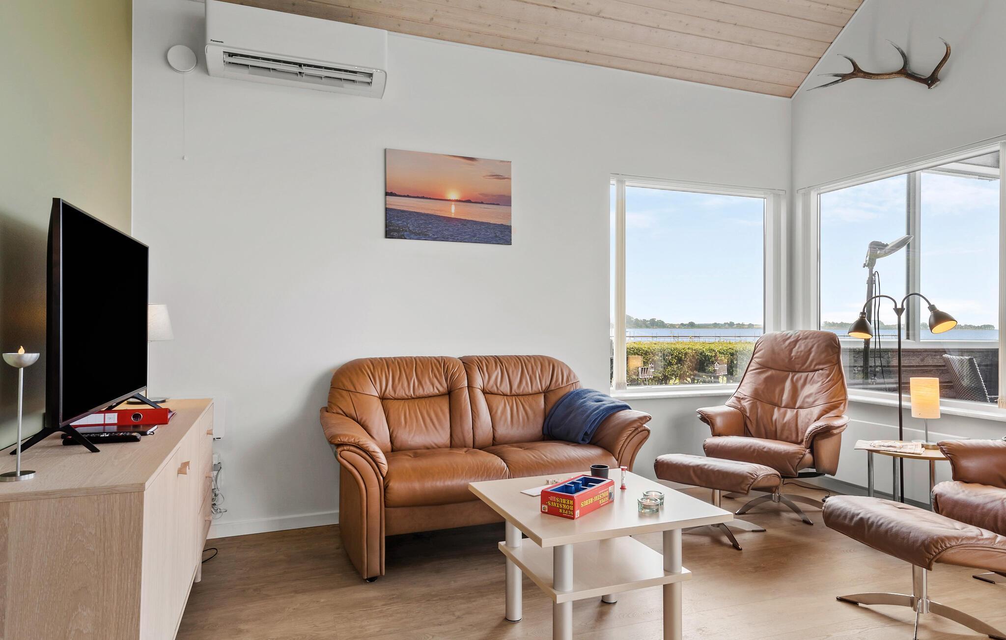 Med kun 10 m til områdets mest børnevenlige badestrand får I ikke bedre beliggenhed end i dette skønne sommerhus. Huset ligger på en lille grund med to gode overdækkede terrasser, det ene med direkte udsigt til stranden og det andet på bagsiden af huset, så I kan sidde ugenert og nyde kaffen eller aftensmaden. Inde fra huset kan I også nyde udsigten gennem de store panoramavinduer, både fra stuen og køkkenet som ligger i åben forbindelse. Der er et dejligt soveværelse med skabsvæg i huset, og med indgang fra den overdækkede terrasse er der adgang til et stort anneks med yderligere en dobbeltseng. Derudover findes der to sovepladser på hemsen. Et rigtig dejligt sommerhus hvor I kan nyde ferien, badestranden og tage på udflugt i området.