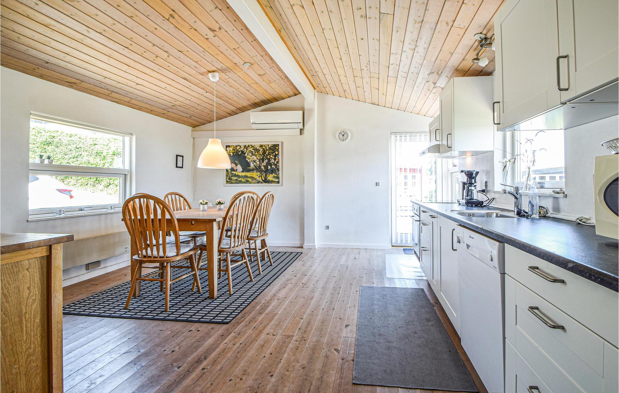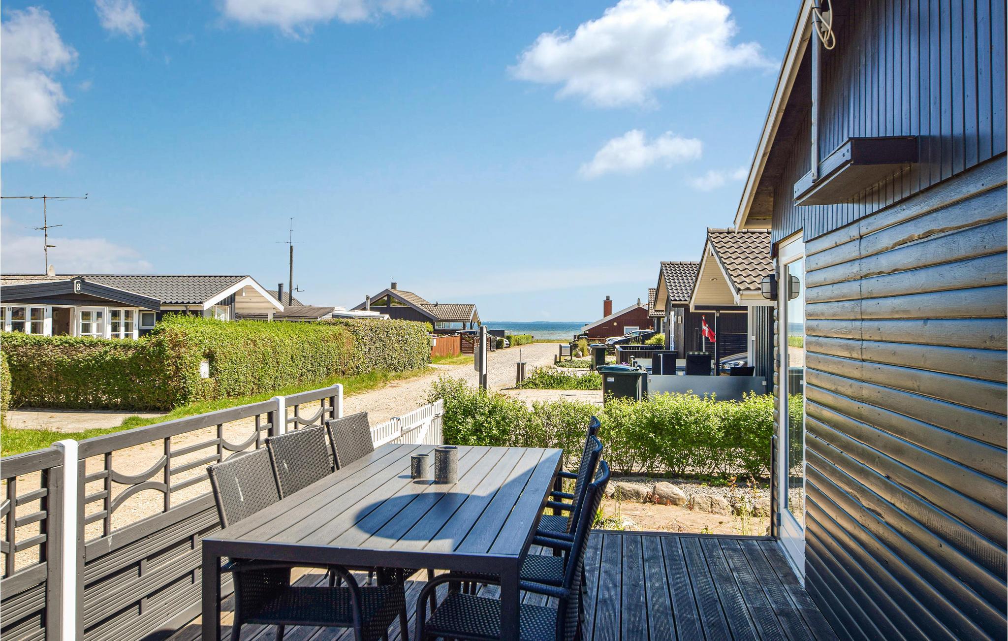 For enden af en mindre feriehusvej ligger dette flotte træhus på en havegrund med randbevoksning. Huset indeholder moderne køkken og badeværelse og er indrettet med pæne møbler overalt. Der er kun få meter til en god og velbesøgt badestrand og kort afstand til en stor udendørs pool, der er åben i sommerperioden (mod mindre betaling). På ca. 45 minutter kan I nå et af Danmarks flotteste, historiske udsigtspunkter Skamlingsbanken, hvor der også er en restaurant.
