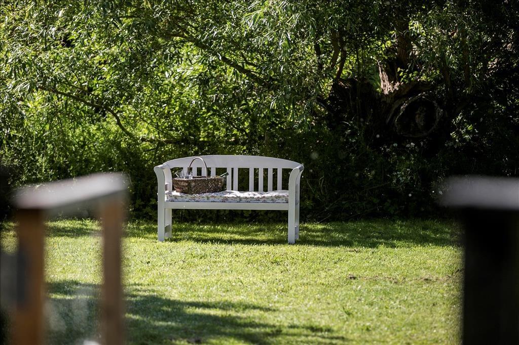 Huset er beliggende på en 904 m2 grund. Haven er totalt indhegnet, hvilket gør den meget velegnet hvis der er små børn og hunde. Der en delvis overdækket træterrasse. Ved huset er der havemøbler, liggestole, gasgrill, bålsted og sandkasse. Bagerst på grunden er der en låge, som giver direkte adgang til stisystemet mod stranden
