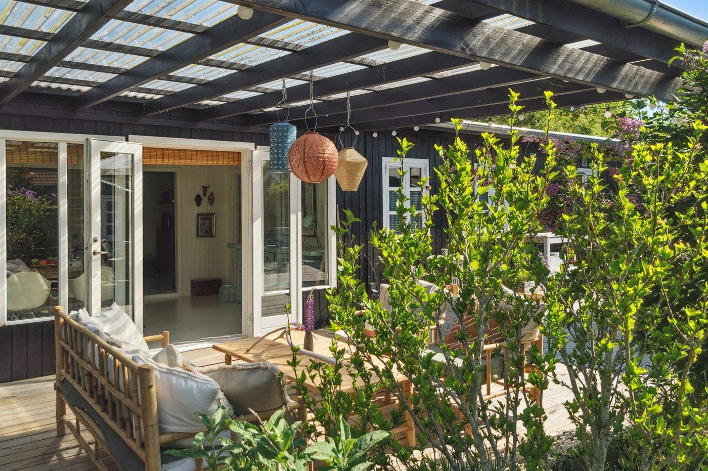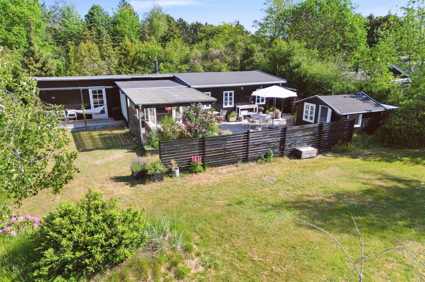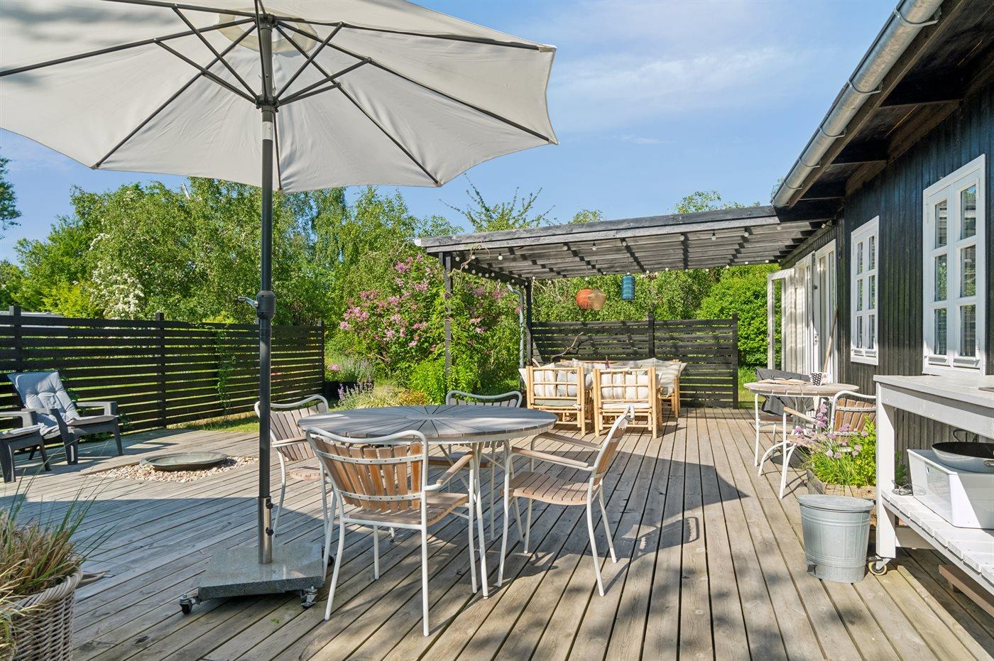 Dette hyggelige og sommerligt indrettede feriehus indbyder til ro og afslapning inde og ude. Huset er beliggende i et fredeligt sommerhusområde i landlige og naturskønne omgivelser og med kun 400 meter til en dejlig og børnevenlig sandstrand. Huset er moderniseret i 2021 og hyggeligt indrettet med et moderne og funktionelt køkken som er i direkte forbindelse med stuen og spisepladsen og som danner rammen for hyggeligt samvær. Herfra er udgang til den store dejlige træterrasse med udebruser og bålsted og hvor en del er overdækket.
