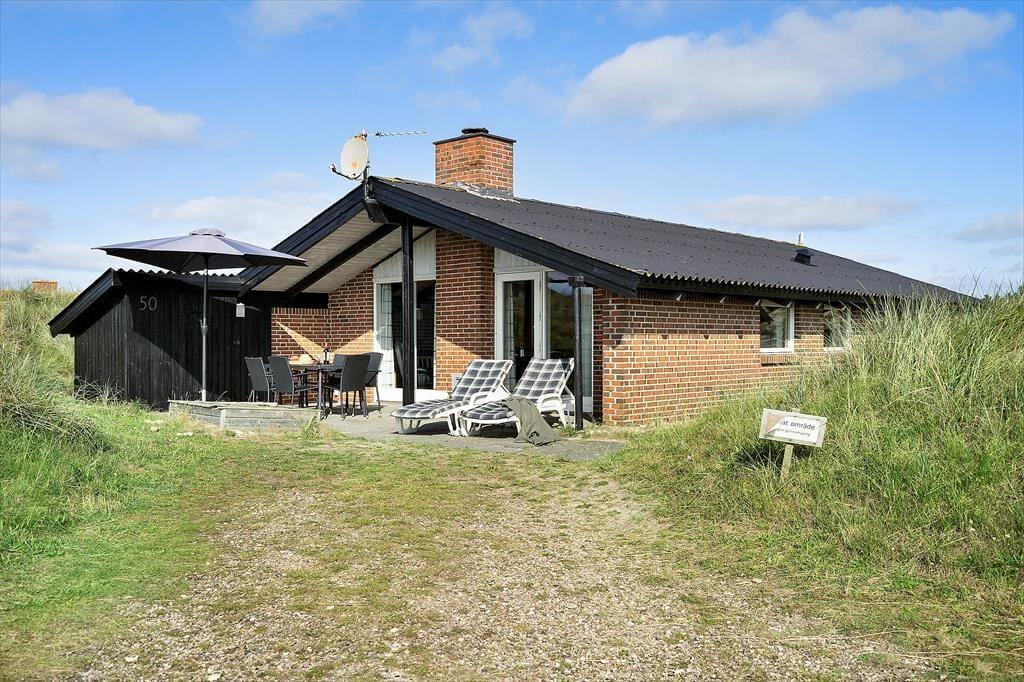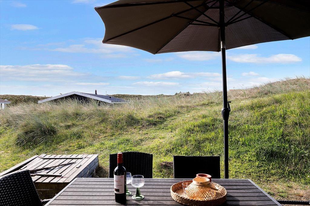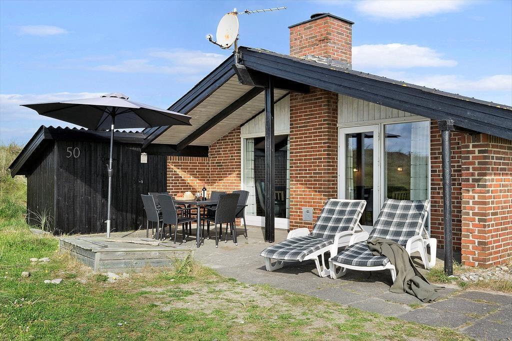Når solen skinner, og feriestemningen for alvor melder sig, er sommerhusets sydvendte terrasse det perfekte samlingspunkt. Her kan I læne jer tilbage i liggestolene, nyde en god bog i skyggen under den overdækkede del eller tænde op i grillen til en afslappet middag under åben himmel. Terrassen er godt afskærmet, så I kan sidde i læ, selv når vestenvinden rusker let i klitterne. De yngste kan lege i sandkassen, mens I nyder udsigten over den store naturgrund med lyng, marehalm og alt det, der hører en ægte ferie i klitlandskabet til