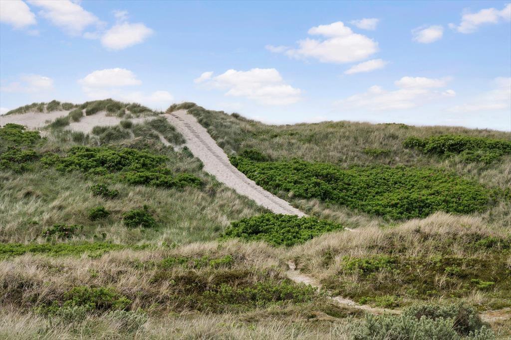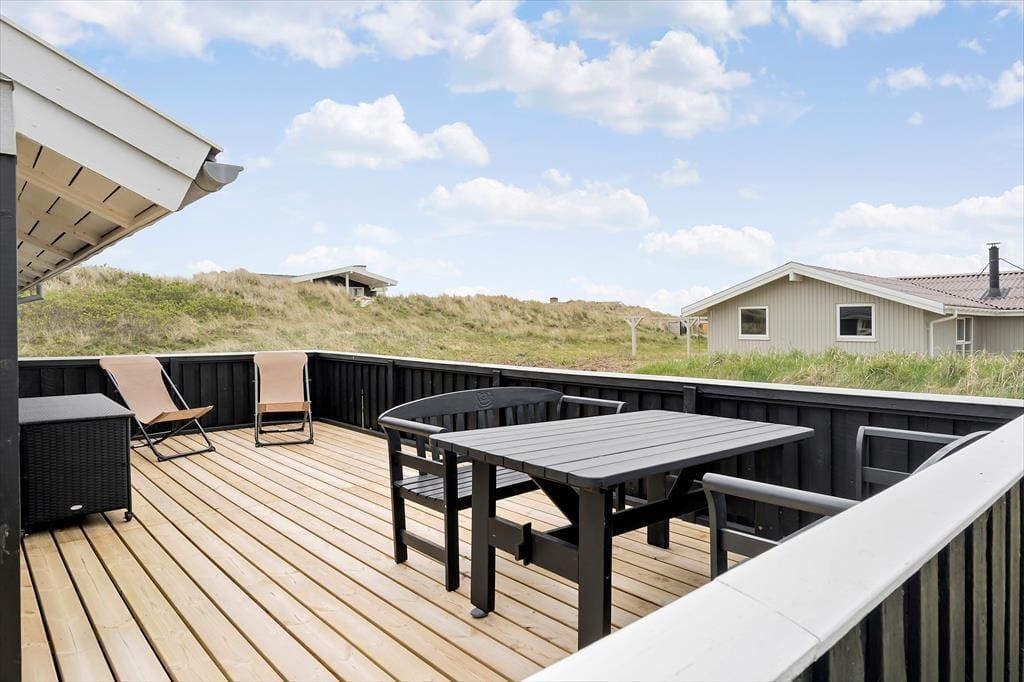 Hvis det gode vejr lokker jer udenfor, har I masser af plads til at sole jer og grille på den sydvendte træterrasse. Den er helt aflukket og delvist overdækket, og afskærmningen mod vest sørger for læ på dage med frisk brise fra havet. Huset ligger i anden række ud mod klitterne, så når I sidder her, har I fin udsigt til det kuperede kystlandskab. Bilen kan parkeres i carporten, og hvis I vil spille bold eller lege, kan I boltre jer på den 1204 m2 store grund.