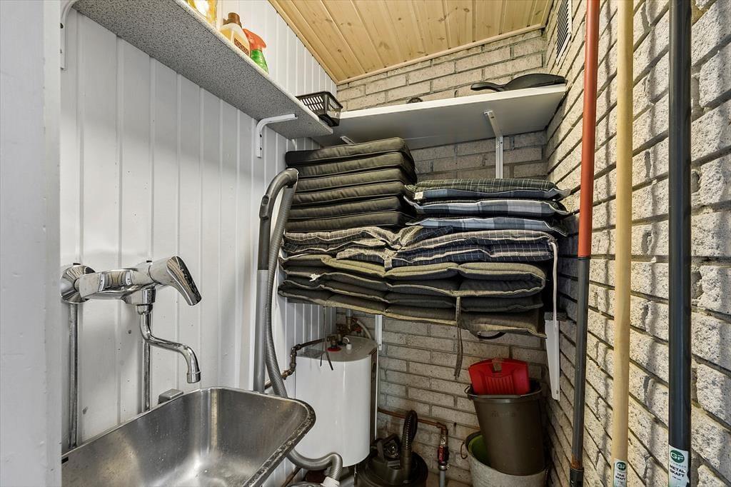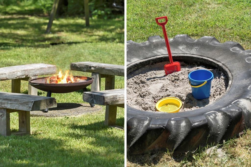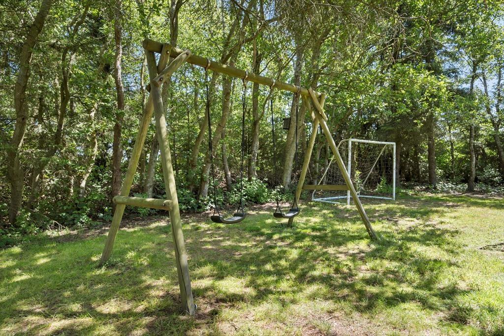 Haven giver jer en skøn ramme om driverlivet. Rundt om sommerhuset er der flere terrassearealer at sole sig på, og I har også mulighed for at sætte jer ved bålpladsen for at riste skumfiduser eller bage snobrød. Til børnene er der gyngestativ, sandkasse og fodboldmål, og hele herligheden ligger godt afskærmet takket være havens træer og buske.