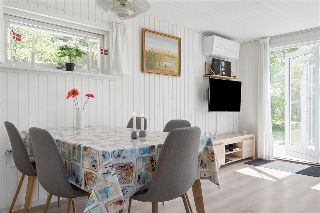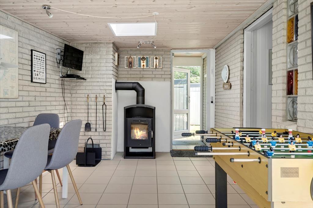 Uanset om I trænger til at slappe fuldstændigt af eller at lege og have det sjovt, kan I se frem til dagene på Bjerregårdsvej 12. Når I vil tage den med ro, er stuen et oplagt opholdssted, for her kan I dase i sofaafdelingen i timevis – eventuelt med et lille afbræk ved spisebordet for at spise frokost eller spille spil. Køkkenet ligger i åben forbindelse med stuen, og i den anden ende af huset finder I et sjovt aktivitetsrum, hvor I kan hygge jer med at spille bordfodbold, dart og hvor der er et spillebord med 7 forskellige spil på. Både stuen og aktivitetsrummet er udstyret med brændeovn, og der er også to tv’er, hvis der er kamp om remotekontrollen. Et brusebadeværelse og et vaskerum hører med til planløsningen, og på de to soveværelser, hvor der er nye senge, er der sengepladser til fem personer.
