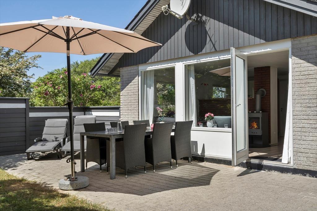 Bjerregård på Holmsland Klit er et herligt sted at holde ferie – ikke mindst når det foregår i dette hyggelige sommerhus, der byder på en stue med brændeovn, et veludstyret aktivitetsrum og en afskærmet, grøn have.