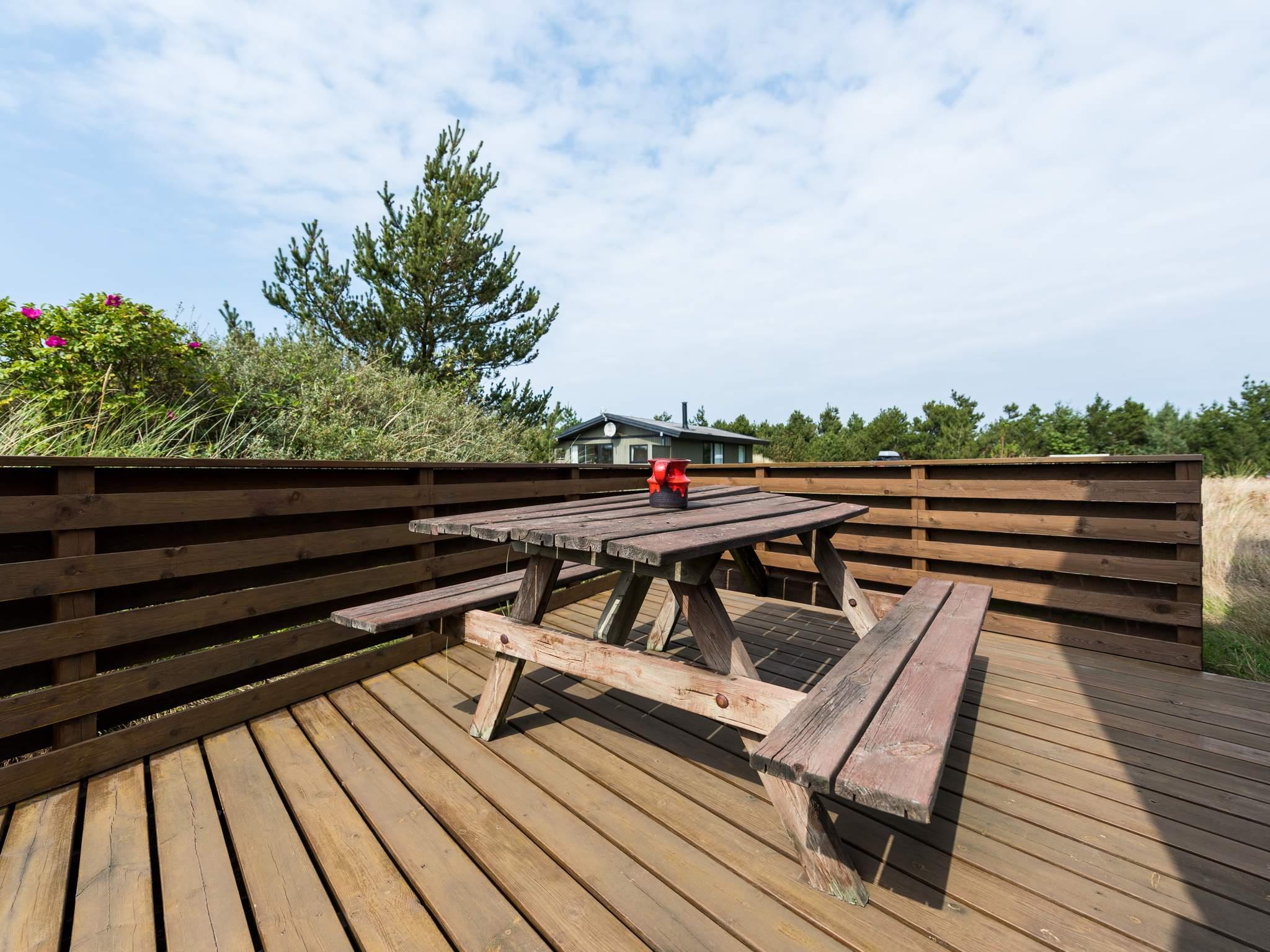 På en kuperet naturgrund tæt ved Vesterhavet ligger dette dejlige feriehus. Fra stuen kommer man direkte ud på en stor delvis overdækket terrasse. Gratis slutrengøring!