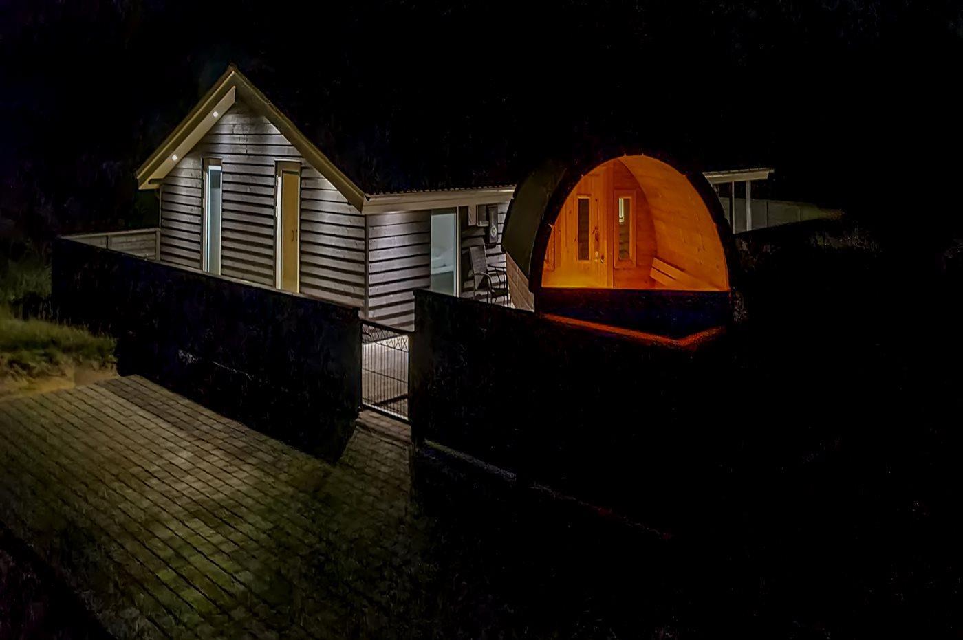 I Bjerregårds smukke klitlandskab ligger dette dejlige feriehus. Huset er nyrenoveret i 2021 både udvendigt og indvendigt, og det oser af en lækker ferie, hvor man straks vil føle sig hjemme i de lyse og lækre omgivelser. Skal der skrues op for selvforkælelsen kan der slappes af i vildmarksbadet og saunatønden, der har vindue mod solnedgangen over Vesterhavet. Det er en stor oplevelse både sommer og vinter. Desuden byder feriehuset på en dejlig 80 m² stor, lukket terrasse, hvor børn og hunde trygt kan boltre sig.