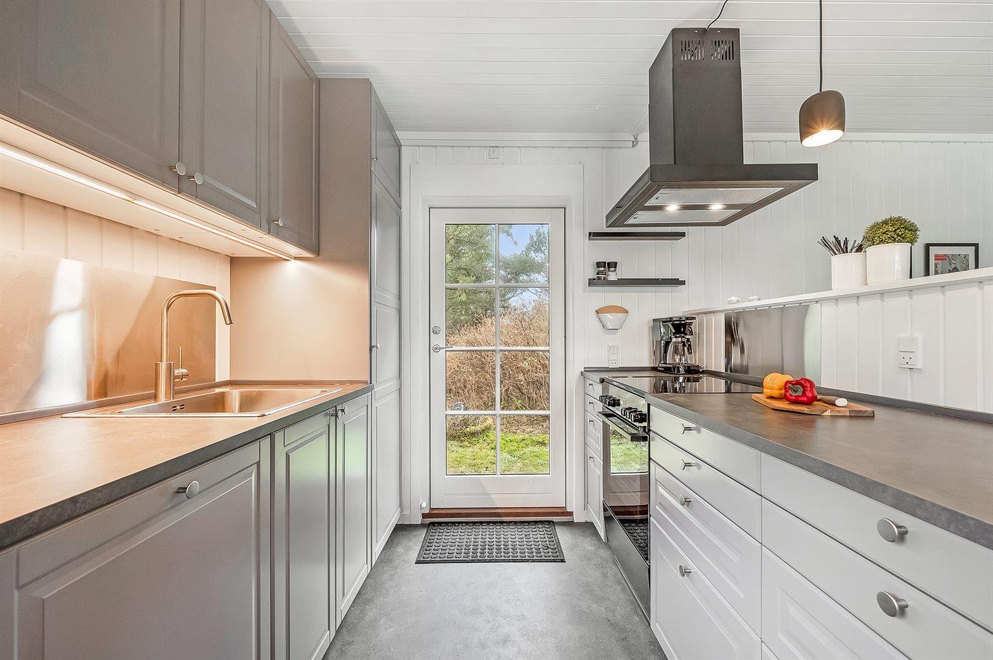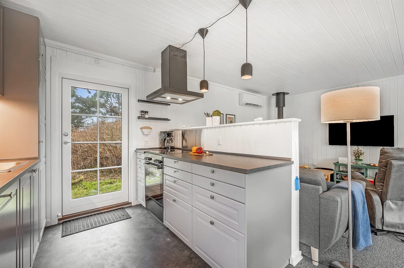 Køkkenet er udstyret med 1 køleskab. Der er 4 keramiske kogeplader, varmluftovn, mikrobølgeovn samt opvaskemaskine.