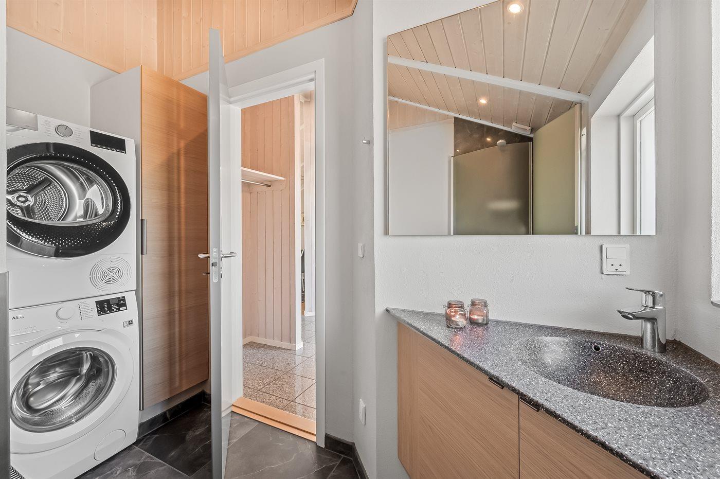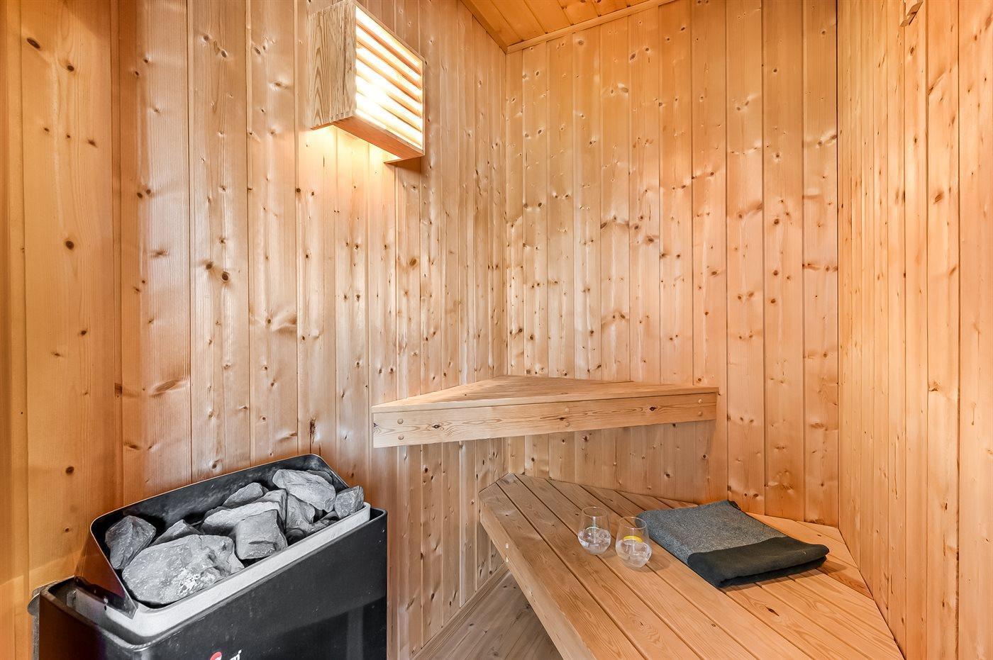 Der er 2 badeværelser med bruseniche og 2 toiletter. Der er gulvvarme på 2 badeværelser. I saunaen er der mulighed for afslapning.