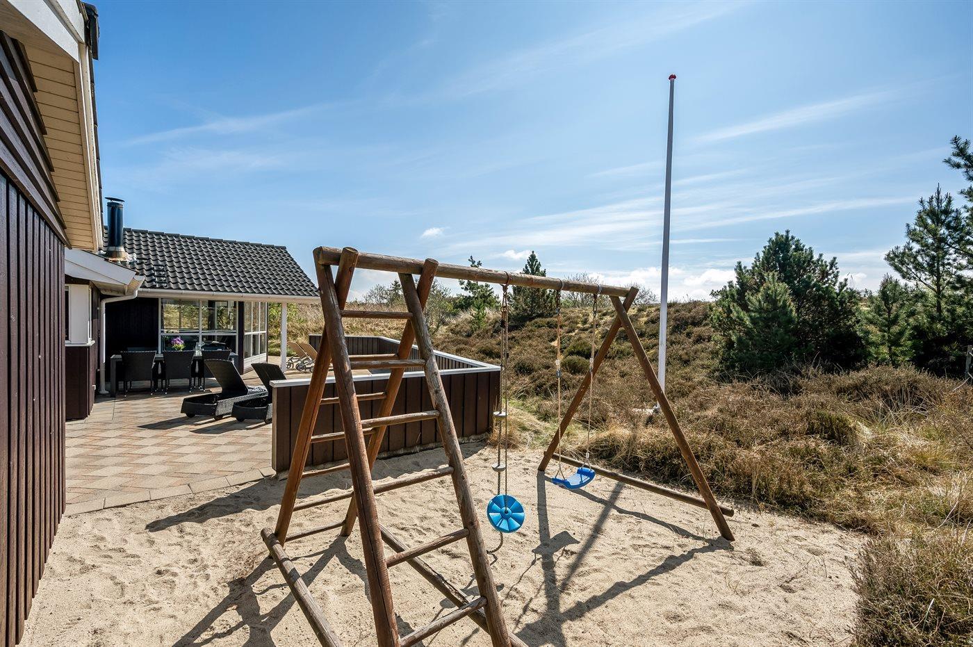 Sommerhuset ligger flot placeret i klitlandskabet, og i vil fornemme den helt specielle atmosfære, der er ved at bo i et hus nær Vesterhavet. Den hyggelige fiskerby Hvide Sande ligger en kort køretur derfra, og her kan i købe friske fisk, nyde en dejlig frokost eller gå på shopping i de små butikker. Er i mere til en aktiv ferie, er der gode muligheder for at vandre, løbe eller cykle på natur-stierne, der snor sig gennem klitterne og sommerhusområderne. Området er desuden meget kendt for sine gode surf-muligheder både ved Vesterhavet, men også ved Ringkøbing Fjord.