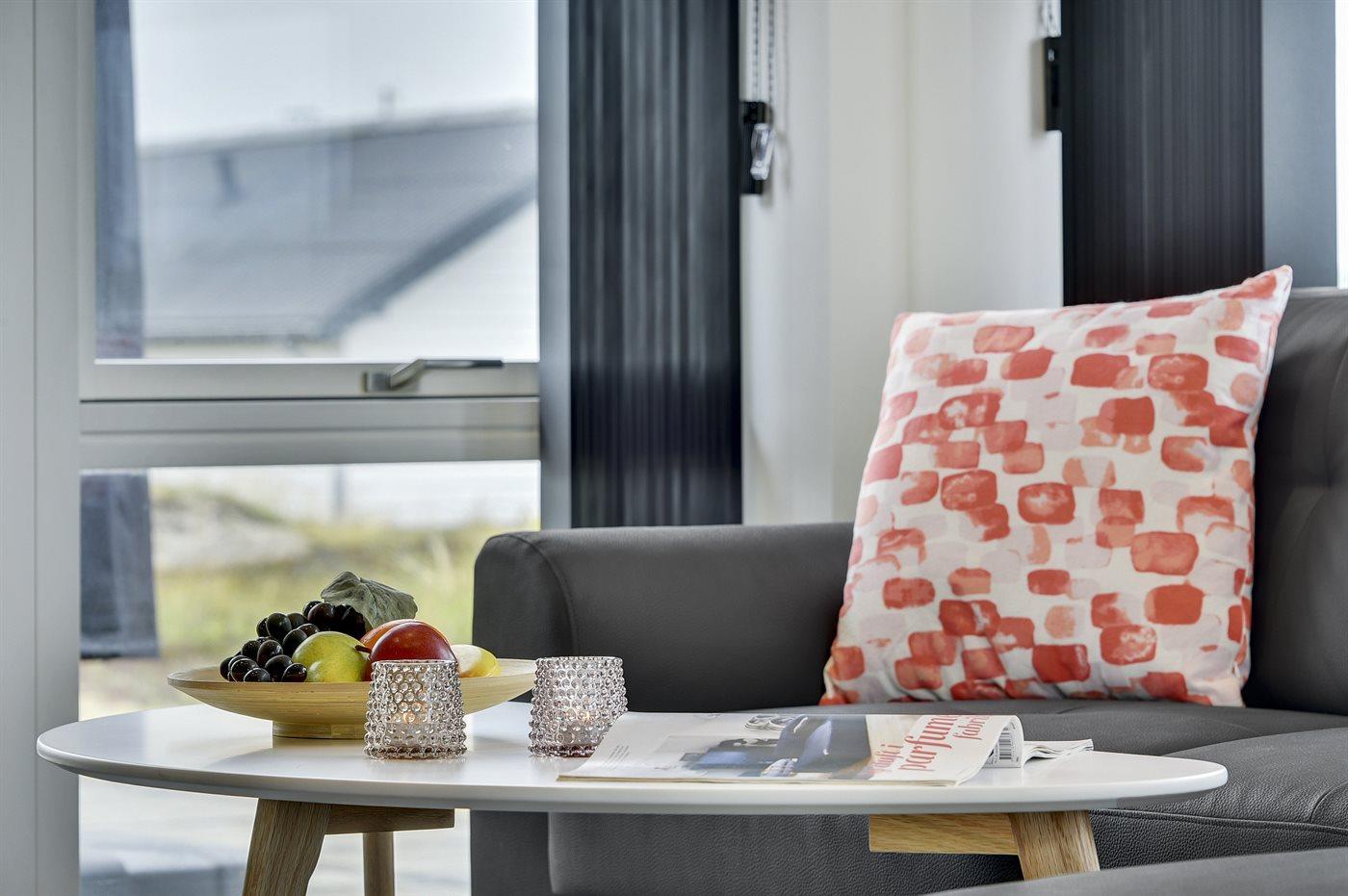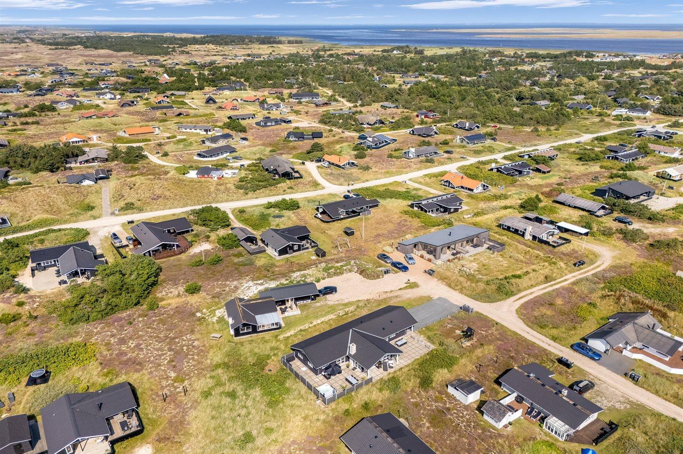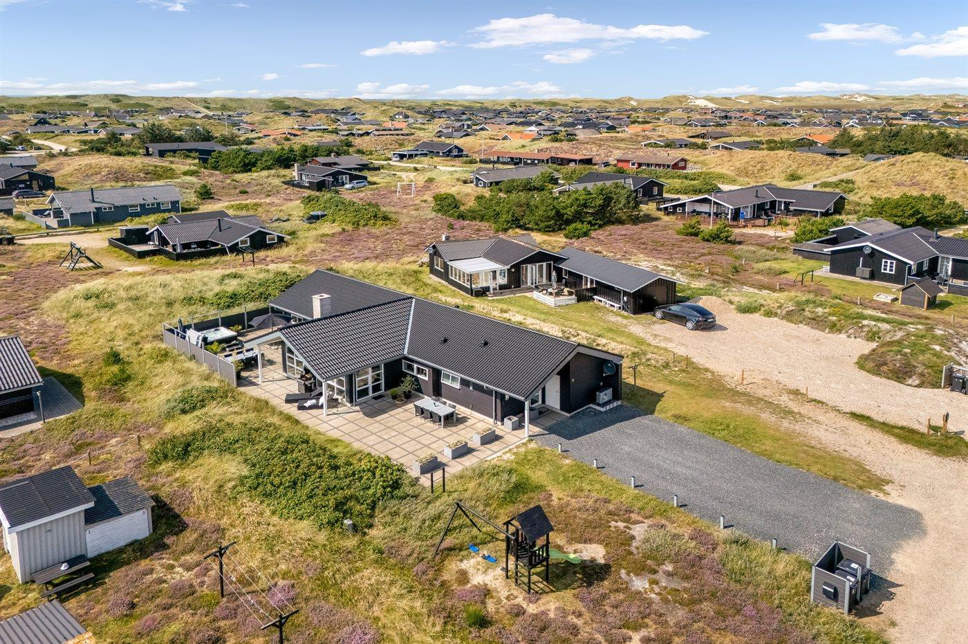 Et flot, nybygget aktivitetshus med en central beliggenhed i Bjerregaard. Her kan man nemt finde hyggen frem samtidig med, at man kan nyde den luksus som kun et nybygget sommerhus kan byde på. Lad børnene tage et spil bordfodbold bag lukkede døre i husets aktivitetsrum samtidig med at I nyder et glas vin i husets flotte opholdsstue - så er der voksen- og børnetid på selv samme tid. Huset ligger nær Vesterhavet og man fornemmer den helt specielle atmosfære, der er ved at bo i et hus nær kysten. Er man til den aktive ferie er der gode muligheder for at vandre eller cykle på naturstien, der snor sig gennem klitterne og sommerhusområderne helt fra Bjerregård til Søndervig.