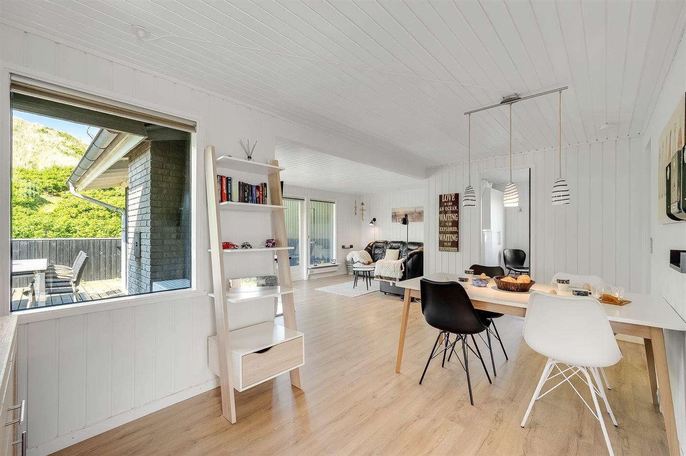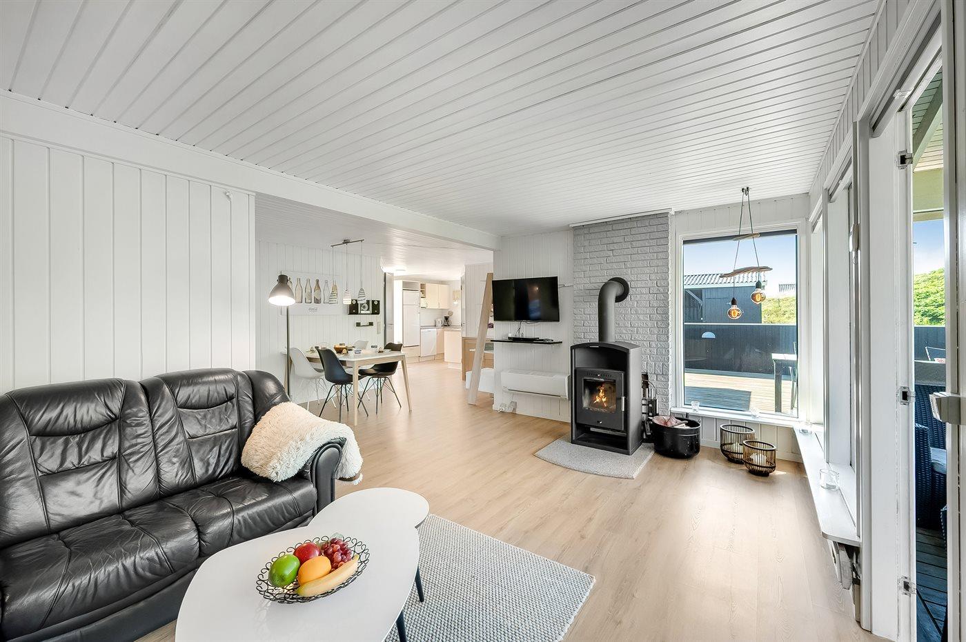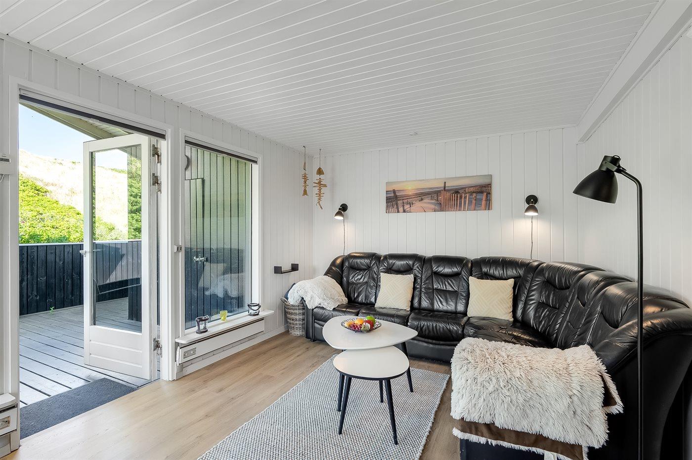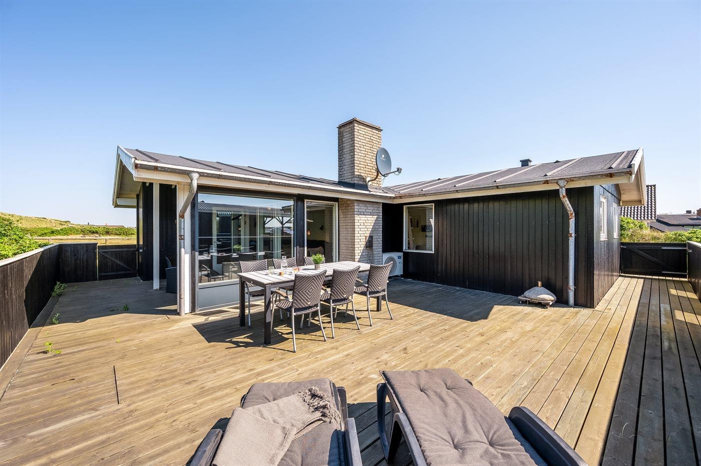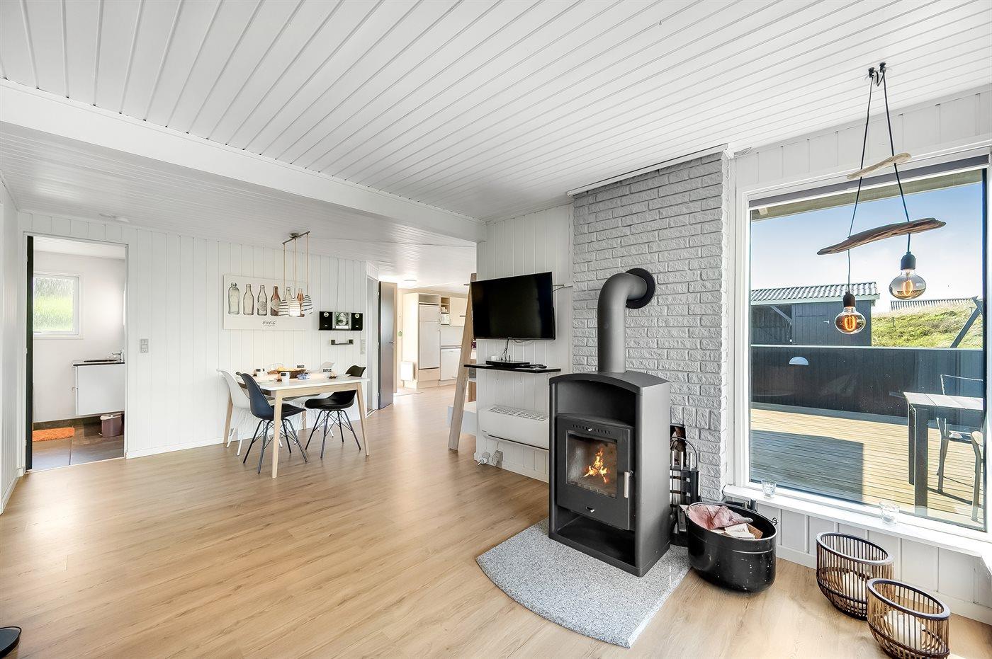 Dette super hyggelige sommerhus har en helt unik beliggenhed i yderste klitrække kun 50 m fra Vesterhavet. På den sydvendt terrasse kan du nyde udsigten til det smukke klitlandskab, alt imens du kan lytte til Vesterhavets brusen, og da terrassen er lukket, kan børn og hunde frit boltre sig. Dette sommerhus har de perfekte rammer til ren afslapning og opladning.