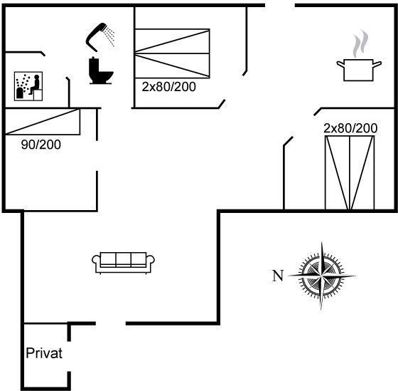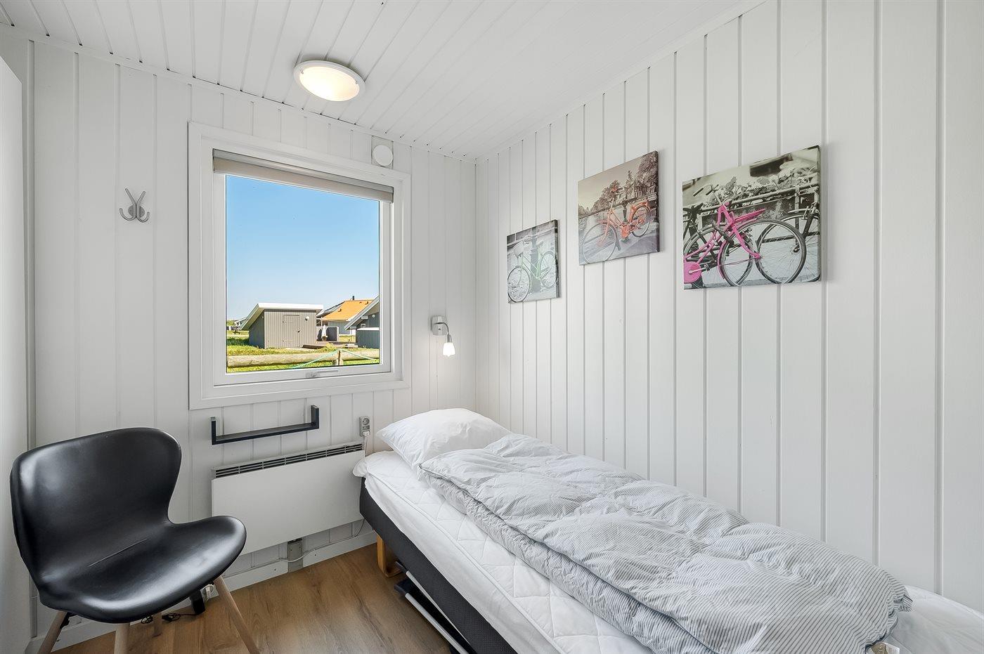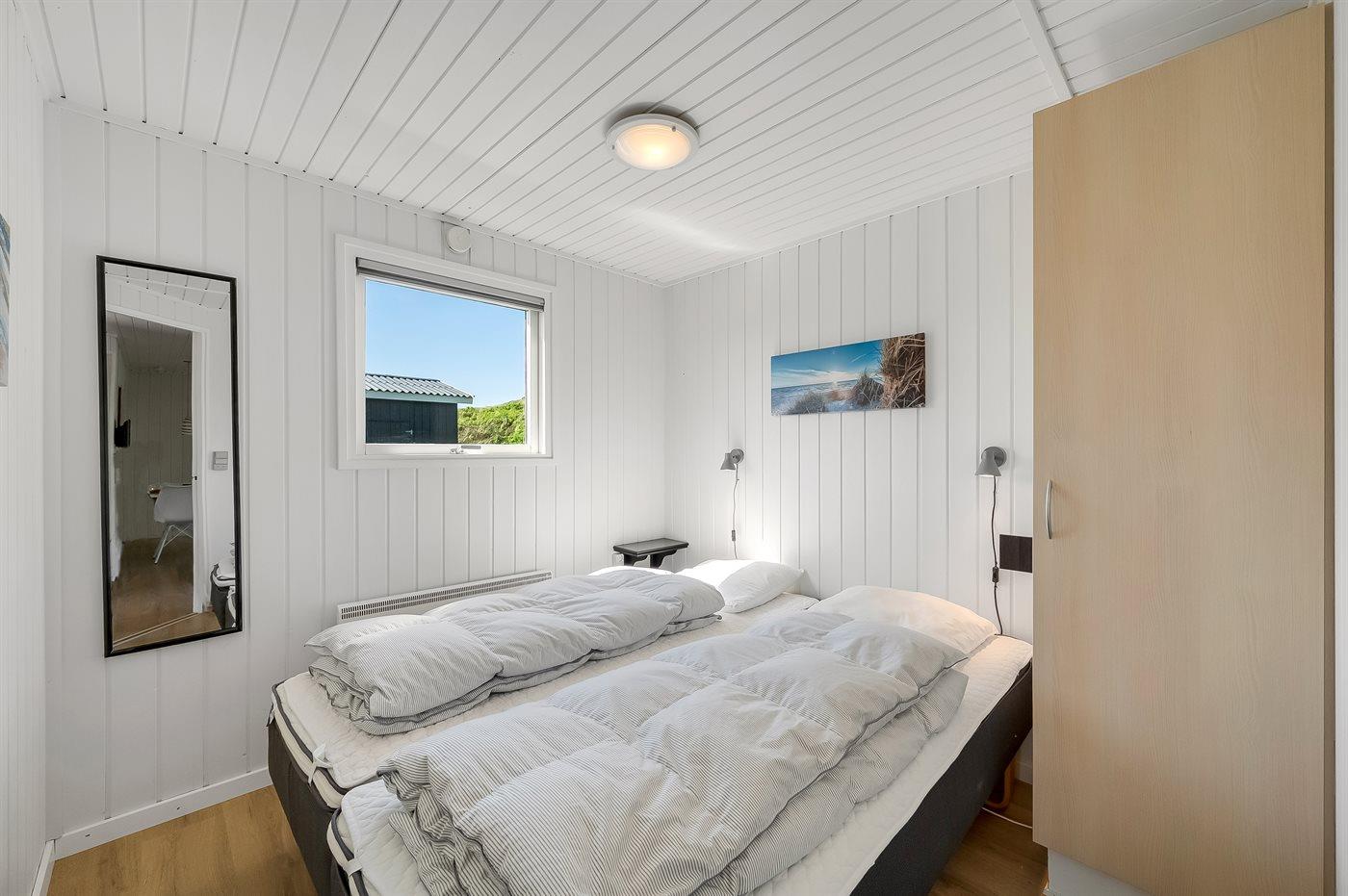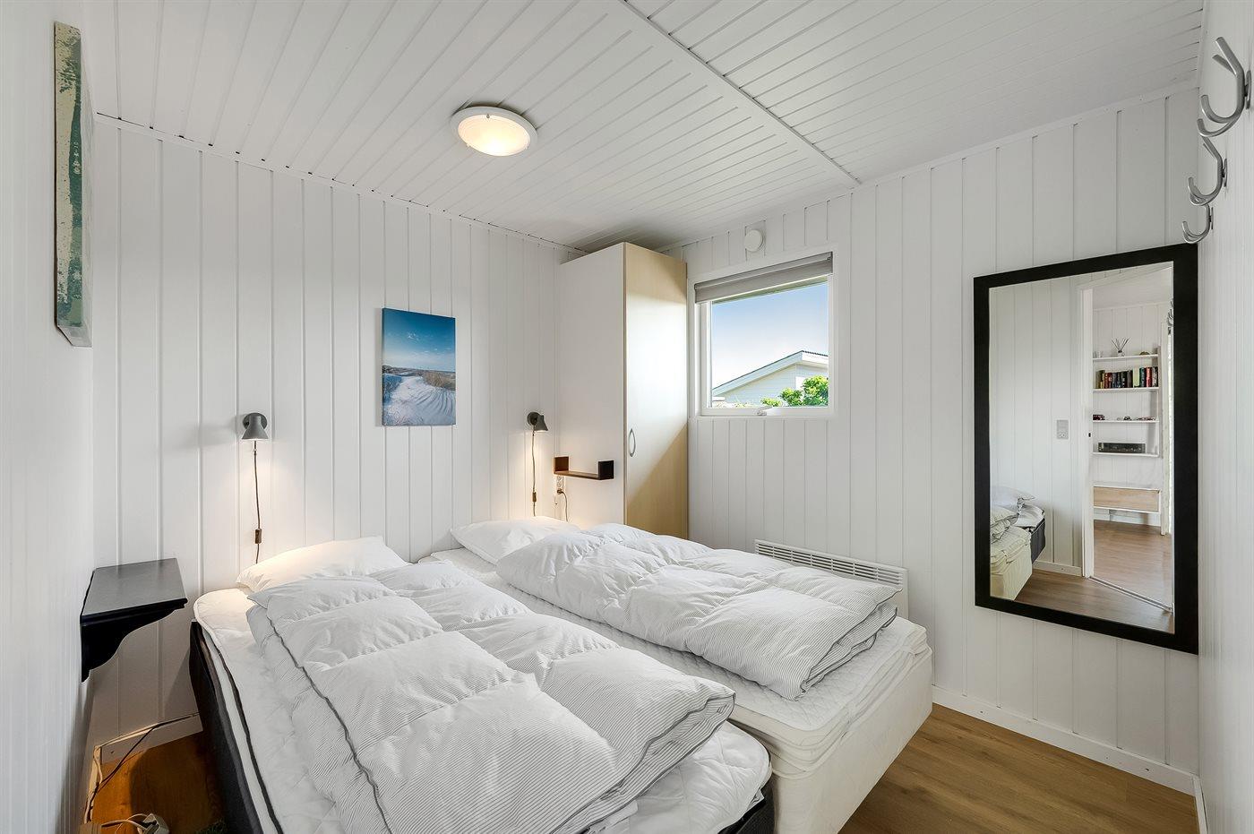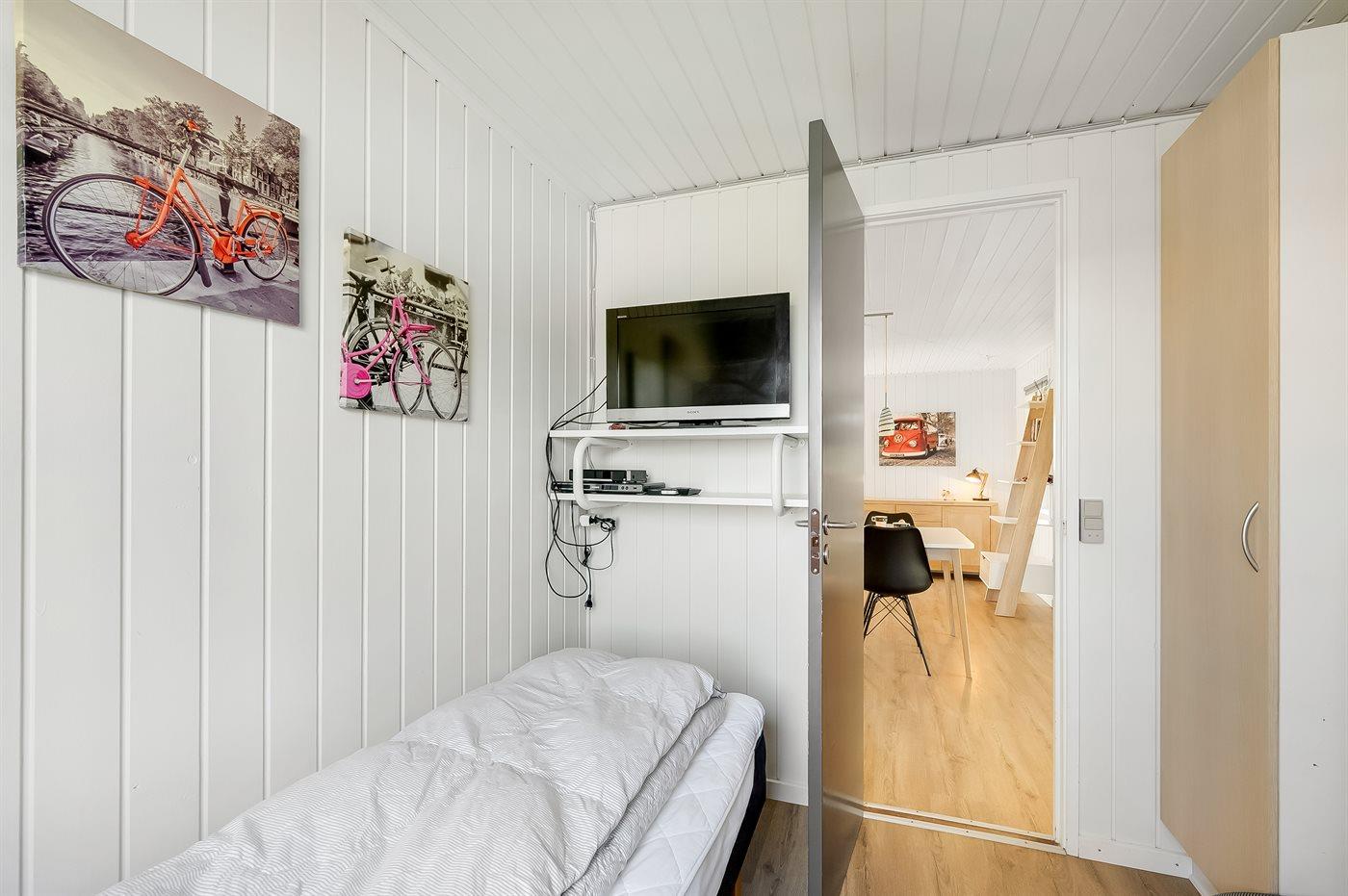 Der er i alt 3 soveværelser. Sovepladserne fordeler sig på: 4 sovepladser i dobbeltsenge. 1 soveplads i enkeltseng. Derudover er der 1 stk. barneseng.