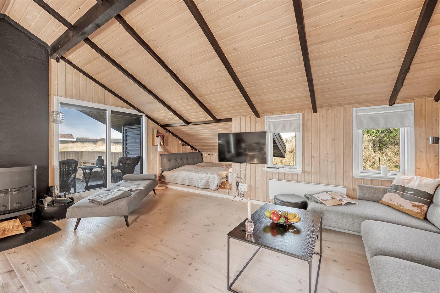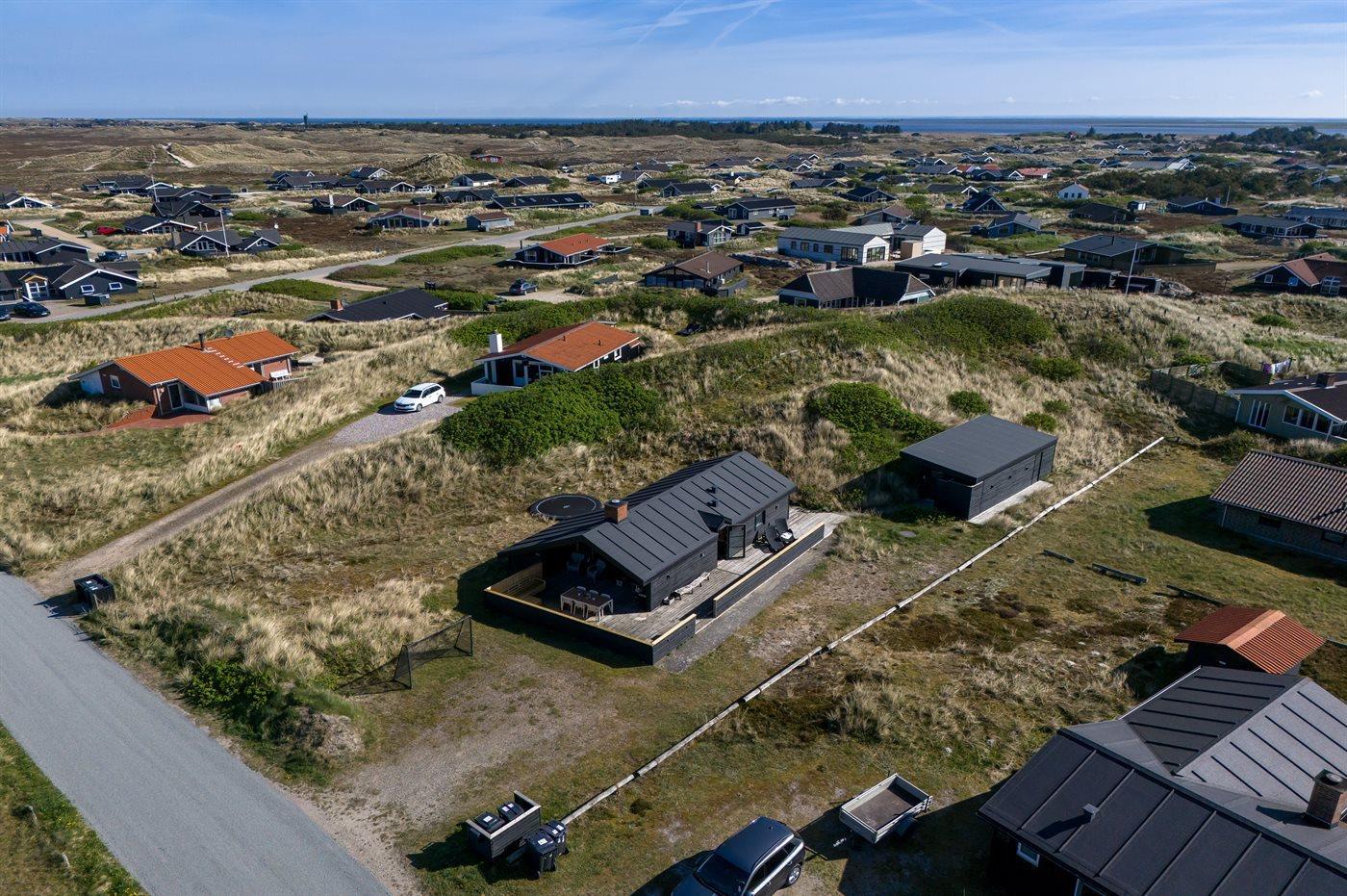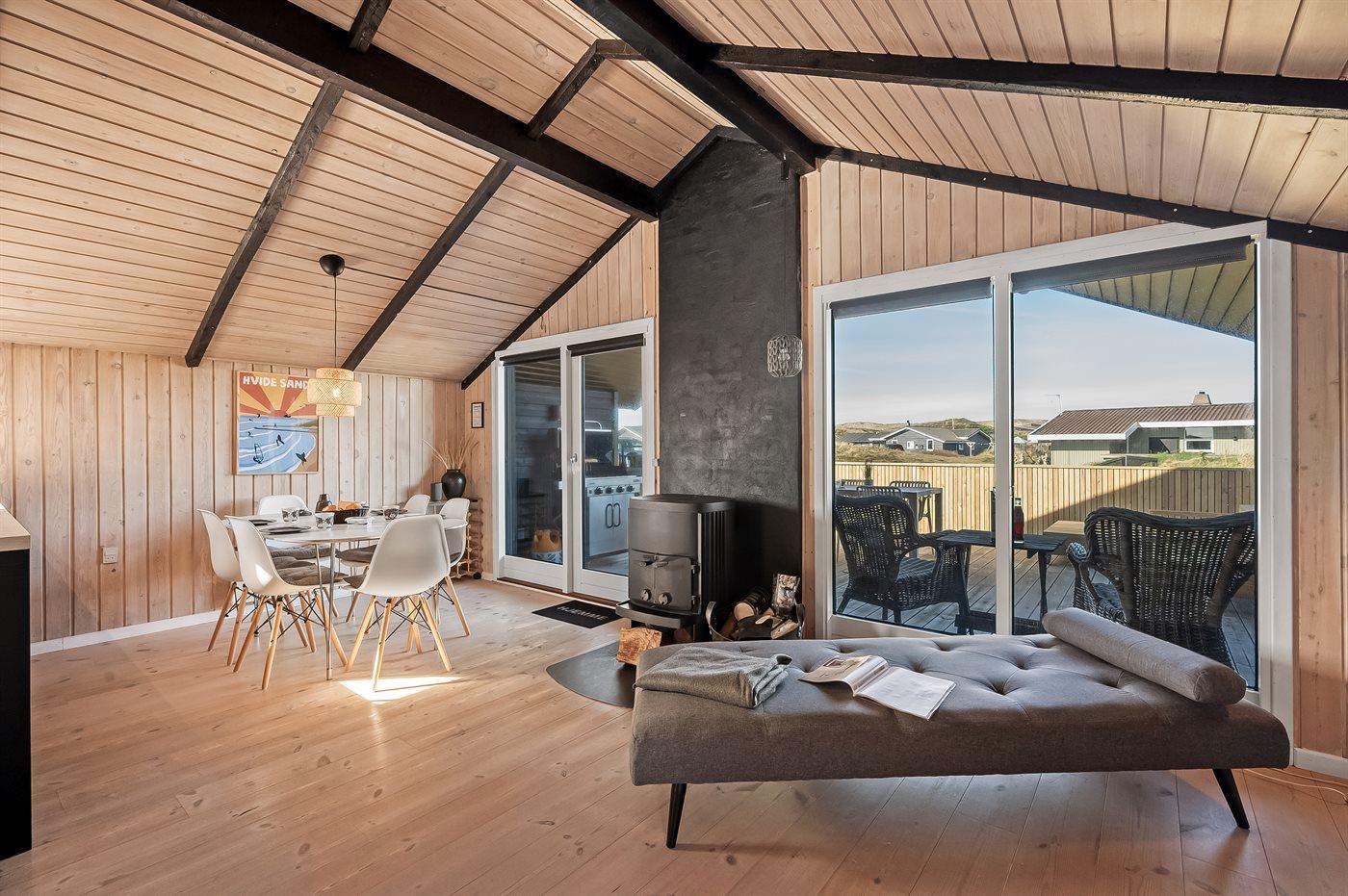 Sommerhuset ligger flot placeret i klitlandskabet, og du vil fornemme den helt specielle atmosfære, der er ved at bo i et hus nær Vesterhavet. Den hyggelige fiskerby Hvide Sande ligger en kort køretur derfra, og her kan du købe friske fisk, nyde en dejlig frokost eller gå på shopping i de små butikker. Er du mere til den aktive ferie, er der gode muligheder for at vandre, løbe eller cykle på natur-cykelstier, der snor sig gennem klitterne og sommerhusområderne. Området er desuden meget kendt for sine gode surf-muligheder både ved Vesterhavet, men også ved Ringkøbing Fjord.