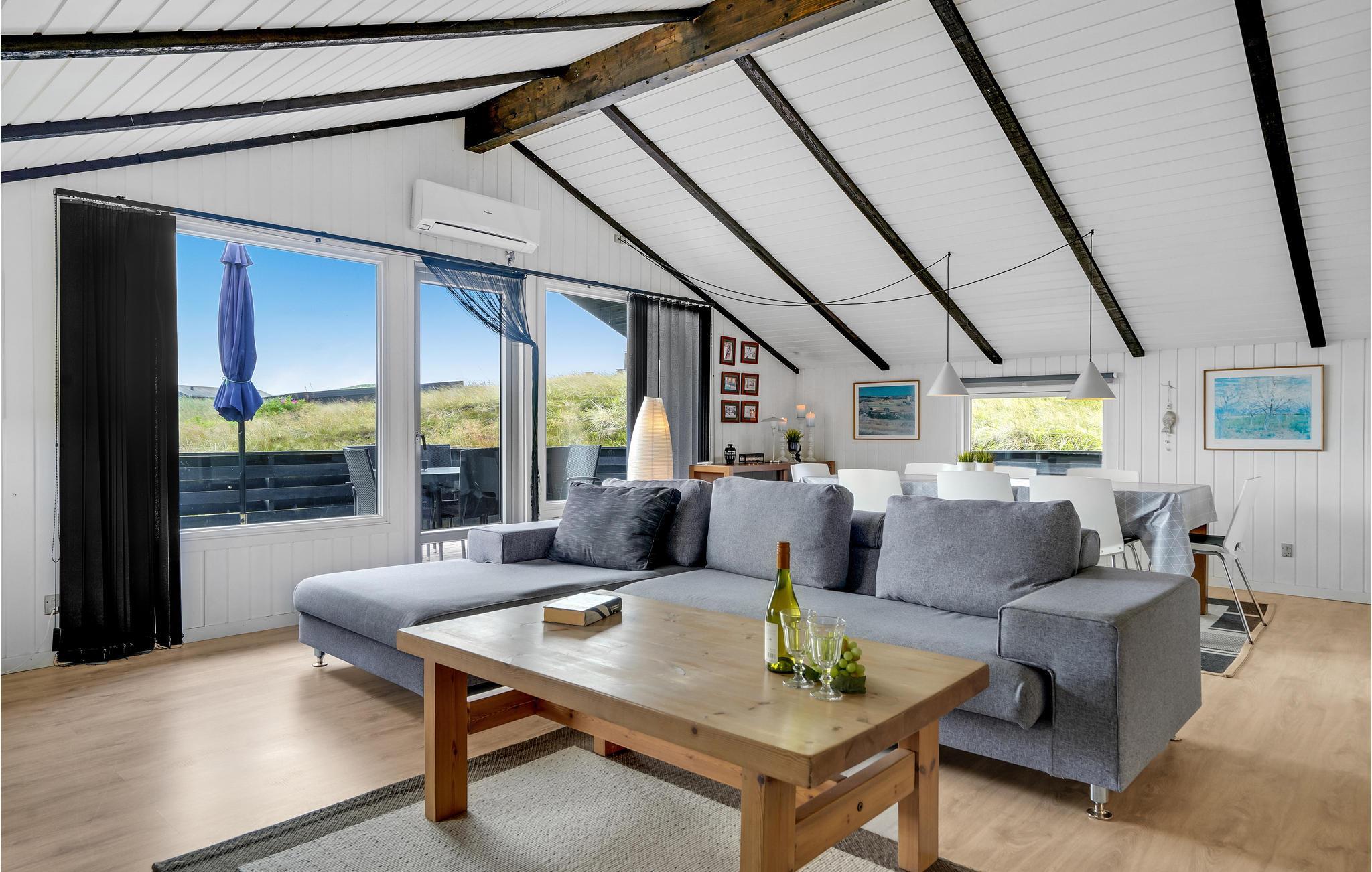 Hyggeligt feriehus med panoramaudsigt over klitter, aktivitetsrum og tæt på stranden i Bjerregård.