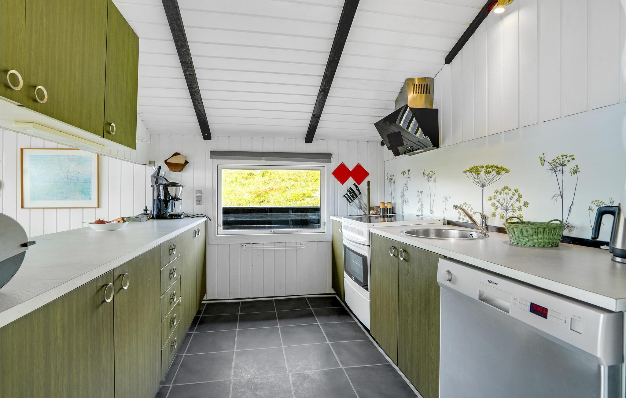 Sæt jer godt til rette i sofaerne i den lyse stue og lyt til den knitrende ild i brændeovnen. Dæk op på spisebordet til fælles måltider og nyd udsigten over klitterne gennem de store vinduer. Tilbered jeres måltider i køkkenet, hvor der er godt med albuerum og god forbindelse til opholdsstuen. Efter en lang dag med udflugter, er det hyggeligt at snuppe en dyst i aktivitetsrummet, som har poolbord, shuffleboard, bordfodbold og en boksemaskine.