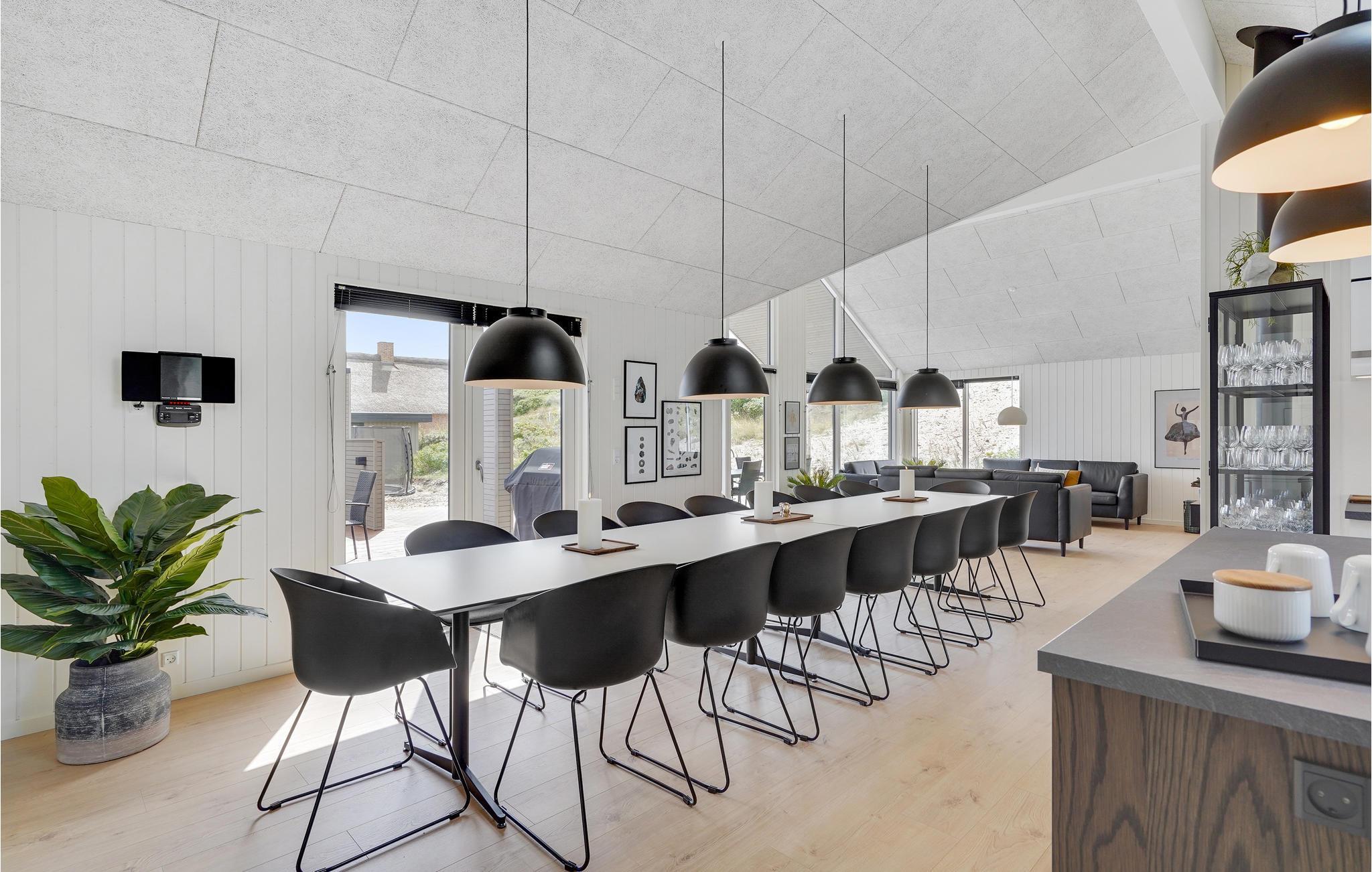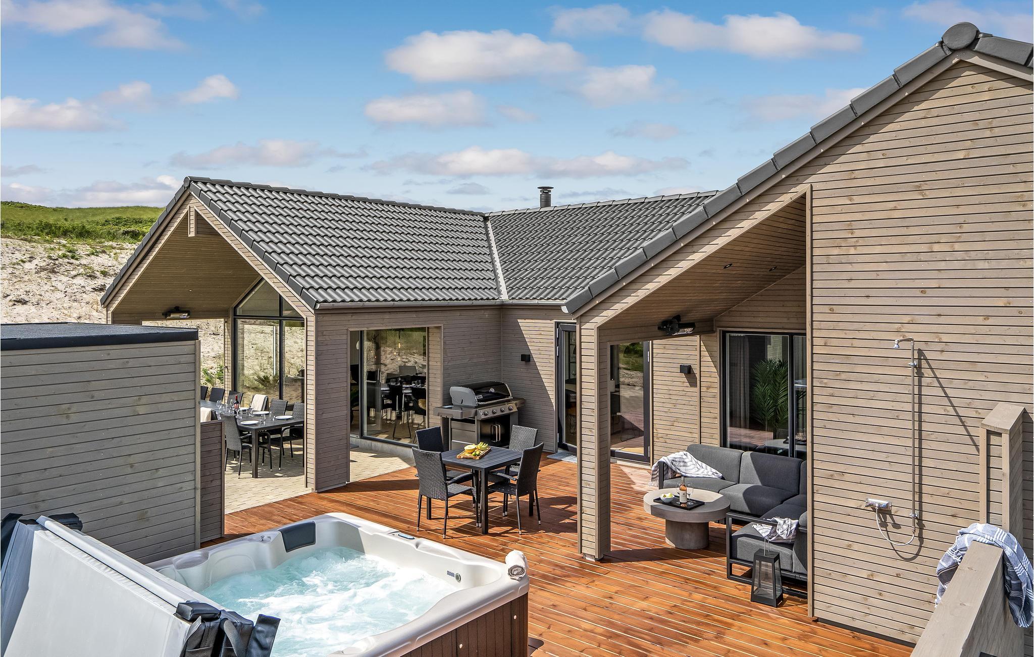 På vestkysten syd for Hvide Sande finder I dette luksuriøse feriehus kun 100 m fra Vesterhavet. Det moderne hus tilbyder veludstyrede værelser af høj kvalitet og en række komfortable og familievenlige faciliteter, der vil tilfredsstille selv de mest krævende gæster.