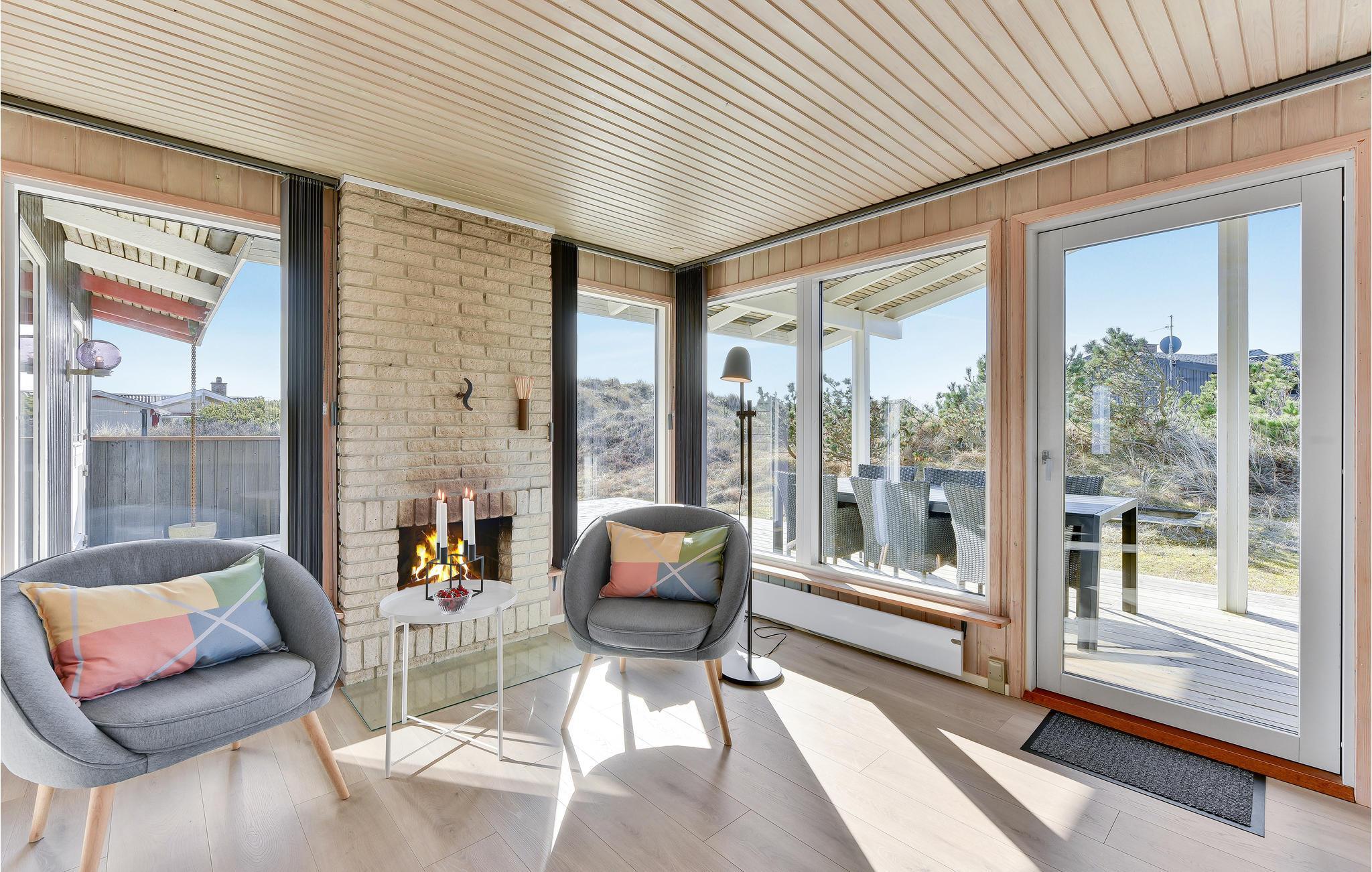 Et hyggeligt feriehus kun 350 m fra det skønne Vesterhav med brede sandstrande, masser af frisk luft og højt til loftet. Nyd en skøn ferie i dette fine feriehus, som løbende moderniseres og vedligeholdes. Beliggenheden er dejlig uforstyrret, og ved huset findes en dejlig stor terrasse og god plads til udendørs liv. Indendørs har huset en dejlig indretning med køkken, spisestue og stue i forlængelse af hinanden. I stuen kan I tænde op i pejsen, og nyde varmen og ildens hyggelige knitren. Desuden tre gode soveværelser og et stort badeværelse med sauna og spabad.