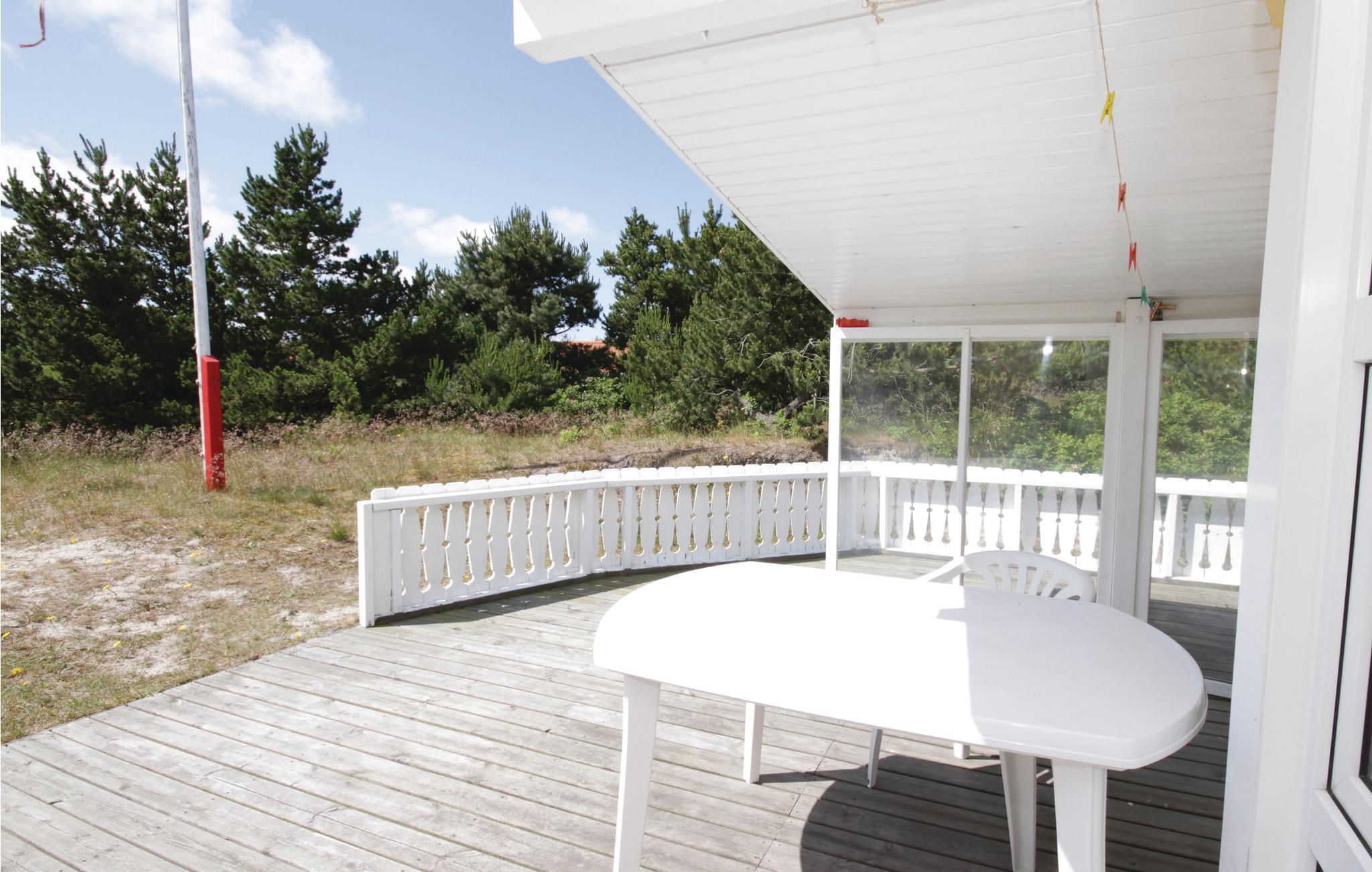 Hyggeligt sommerhus i Hvide Sande med stor terrasse, tæt på havet og naturgrund med granbevoksning.