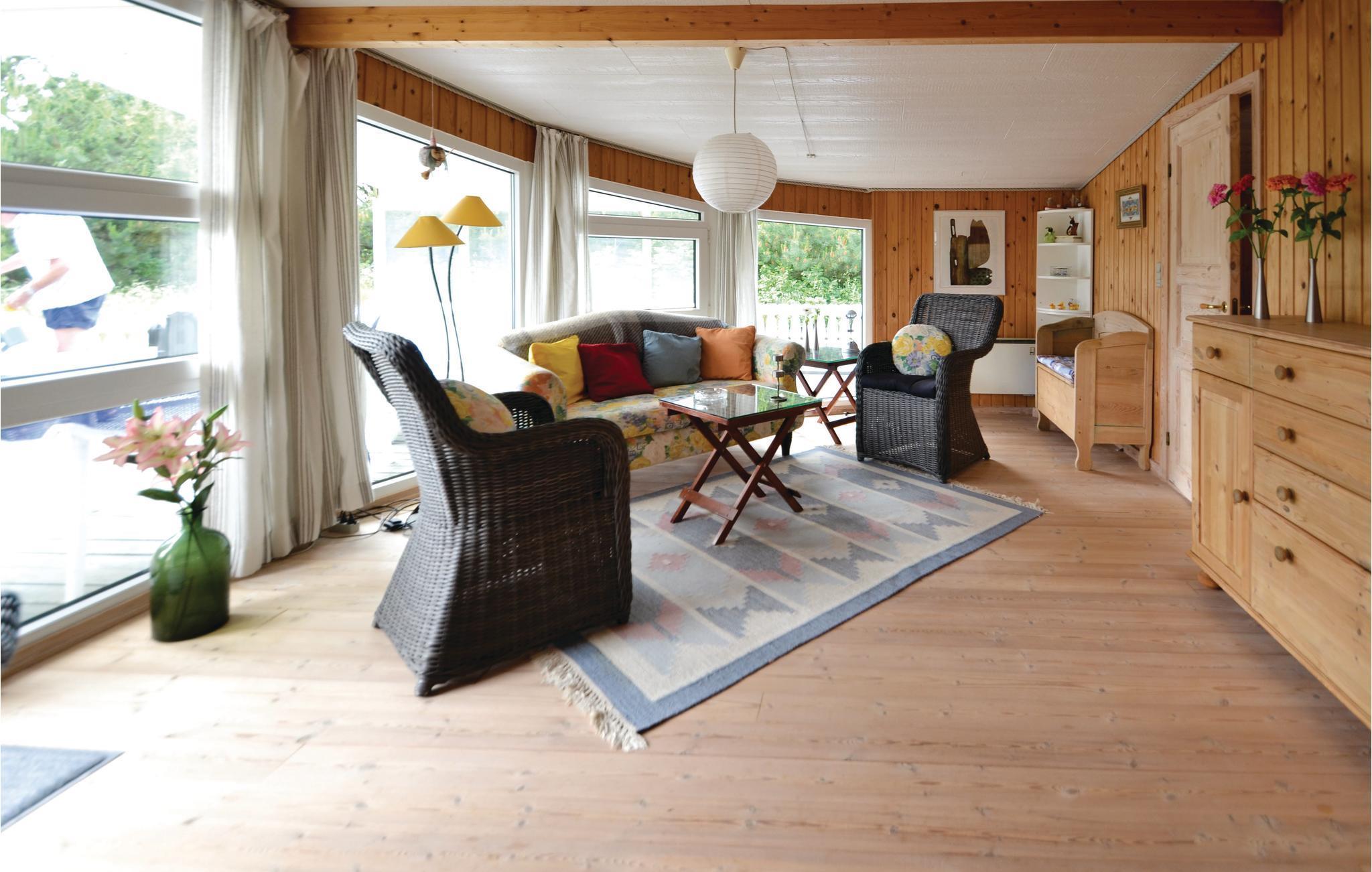 Et meget hyggeligt og velholdt sommerhus beliggende på stor, lidt kuperet naturgrund med granbevoksning. To sammenhængende stuer med franske døre imellem, begge med pænt møblement og køkken samt spisebord i den ene stue. Dejlig stor terrasse, hvor en del er overdækket, så I kan sidde under tag på de lange lune sommeraftener, når duggen er faldet.