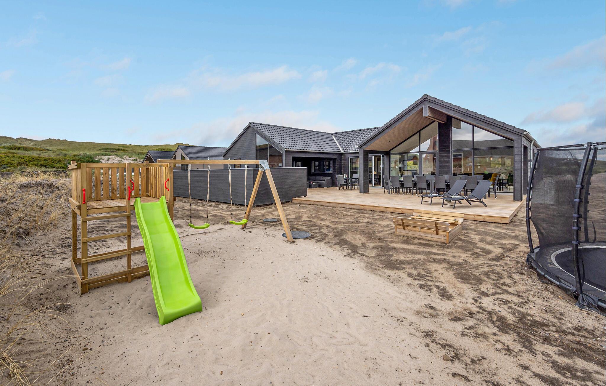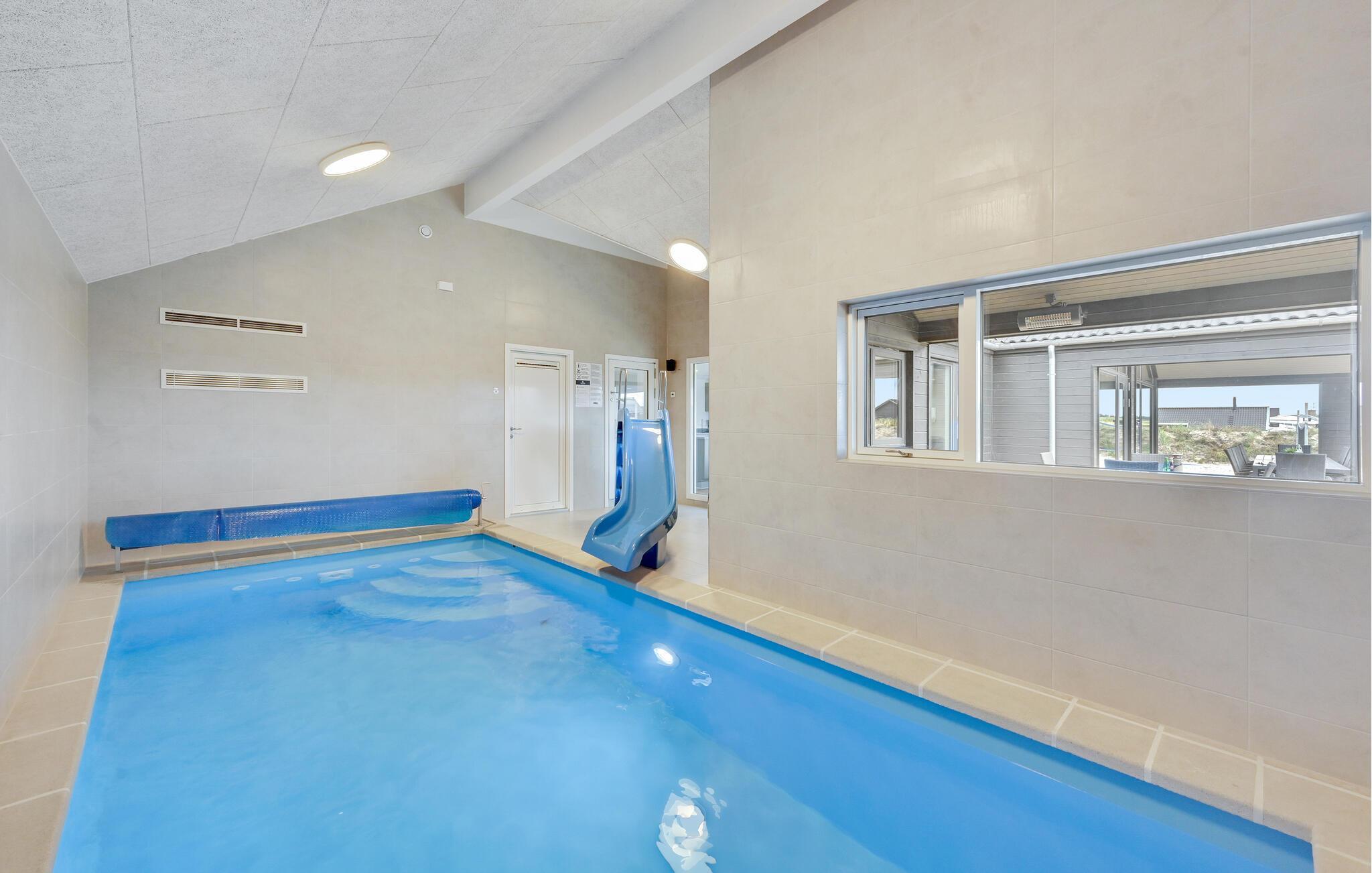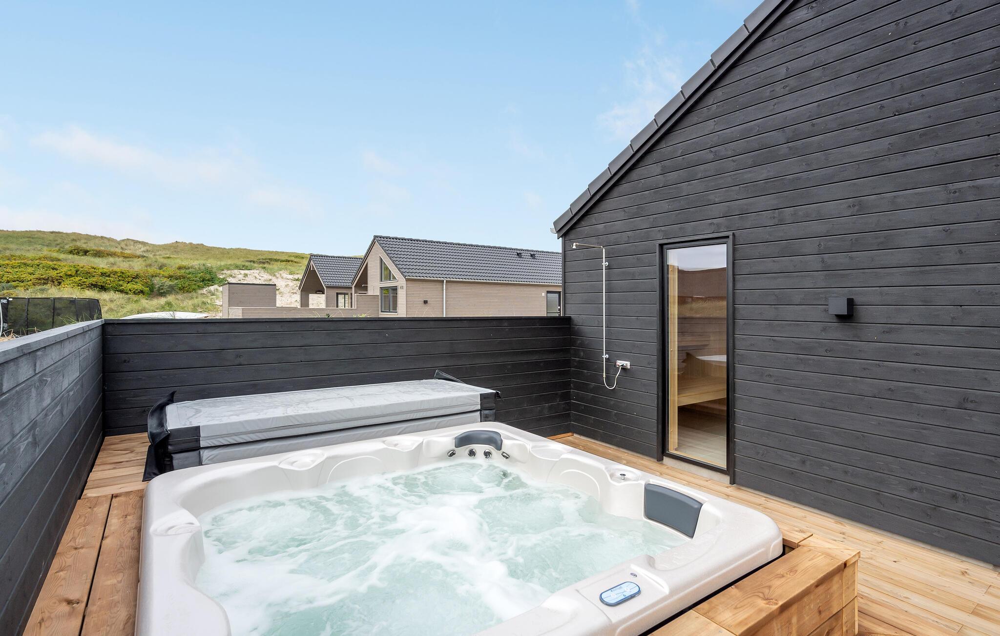 Velkommen til et moderne sommerhus med indendørs pool, sauna og stor terrasse nær Vesterhavet.