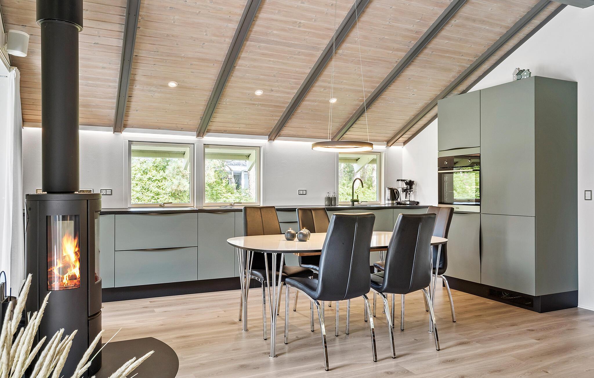 Charmerende træhus i Bjerregård med moderne køkken, brændeovn og nærhed til strand og natur.