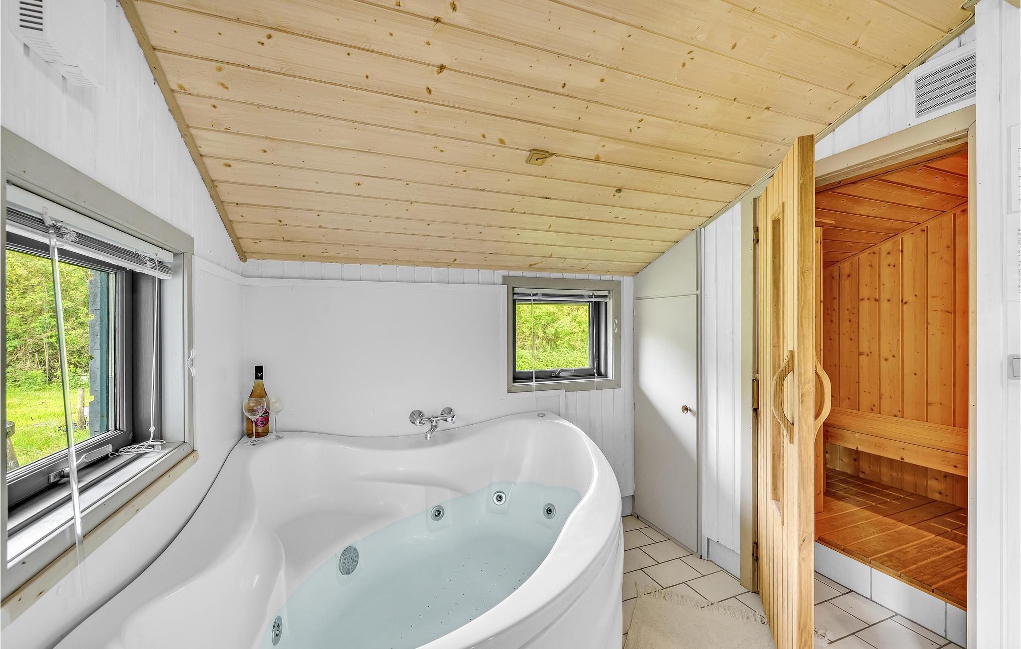 Hyggeligt moderniseret træferiehus i Bjerregård med spabad, sauna og tæt på Vesterhavet.