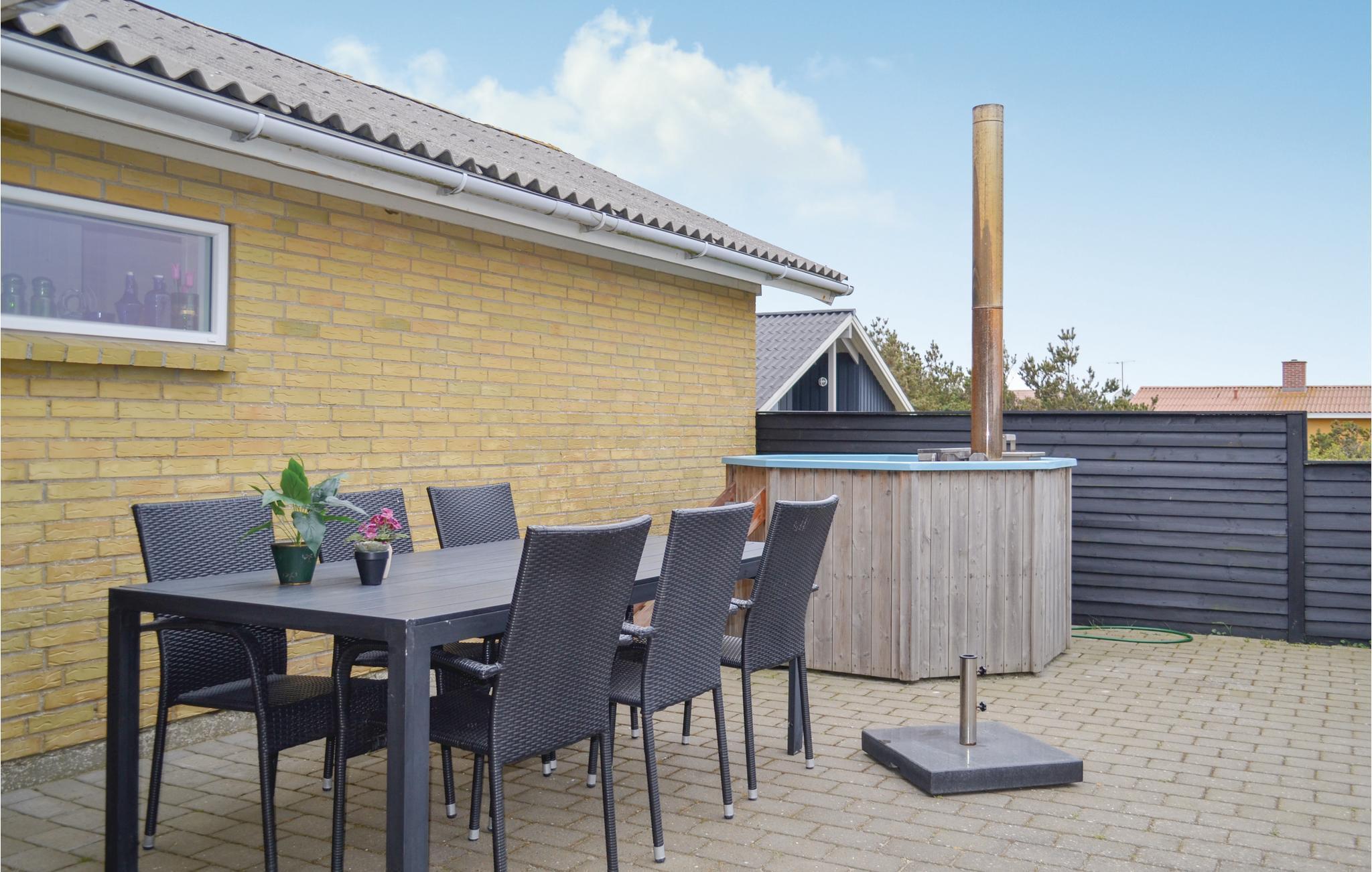 I et roligt område, og på en lukket vej, ligger dette dejlige sommerhus med alt det, der skal til for at I kan have en ferie med frihed til aktiviteter, afslapning og luksus på samme tid. På husets terrasse står et lækkert vildmarksbad, hvor I kan slappe af i det varme vand, med udsigt til klitterne med vest. Tag også på tur i det skønne naturområde omkring Ringkøbing Fjord, hvor der er mange hyggelige småbyer og forskellige former for attraktioner - eksempelvis Hvide Sandes hyggelige gader, eller surfskolerne, hvor hele familien kan lære at komme frem med bræt og sejl. I er tæt på Vesterhavets brede strande og det brusende hav.