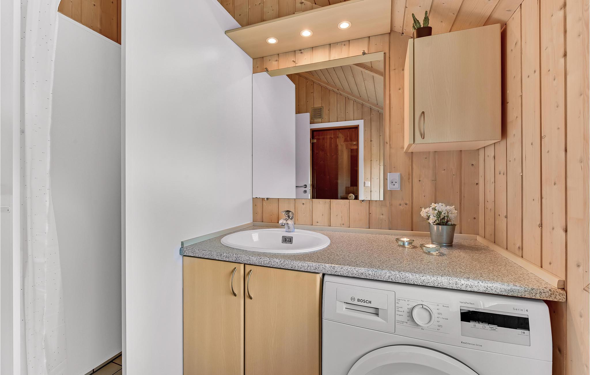 På en dejlig stor naturgrund ligger dette moderne og velholdte feriehus, som er smagfuldt og hyggeligt indrettet. I haven er der legeredskaber til børnene, ligesom det er skønt at sidde på terrassen, der er afskærmet af et hegn. Her er udendørs belysning, til de lange lune sommeraftner, hvor det er svært at rive sig løs og gå indendørs. Huset ligger i gåafstand af badestrand, fjorden og den lokale købmand. Området indbyder til lange gåture langs stranden eller i det uberørte klitlandskab.