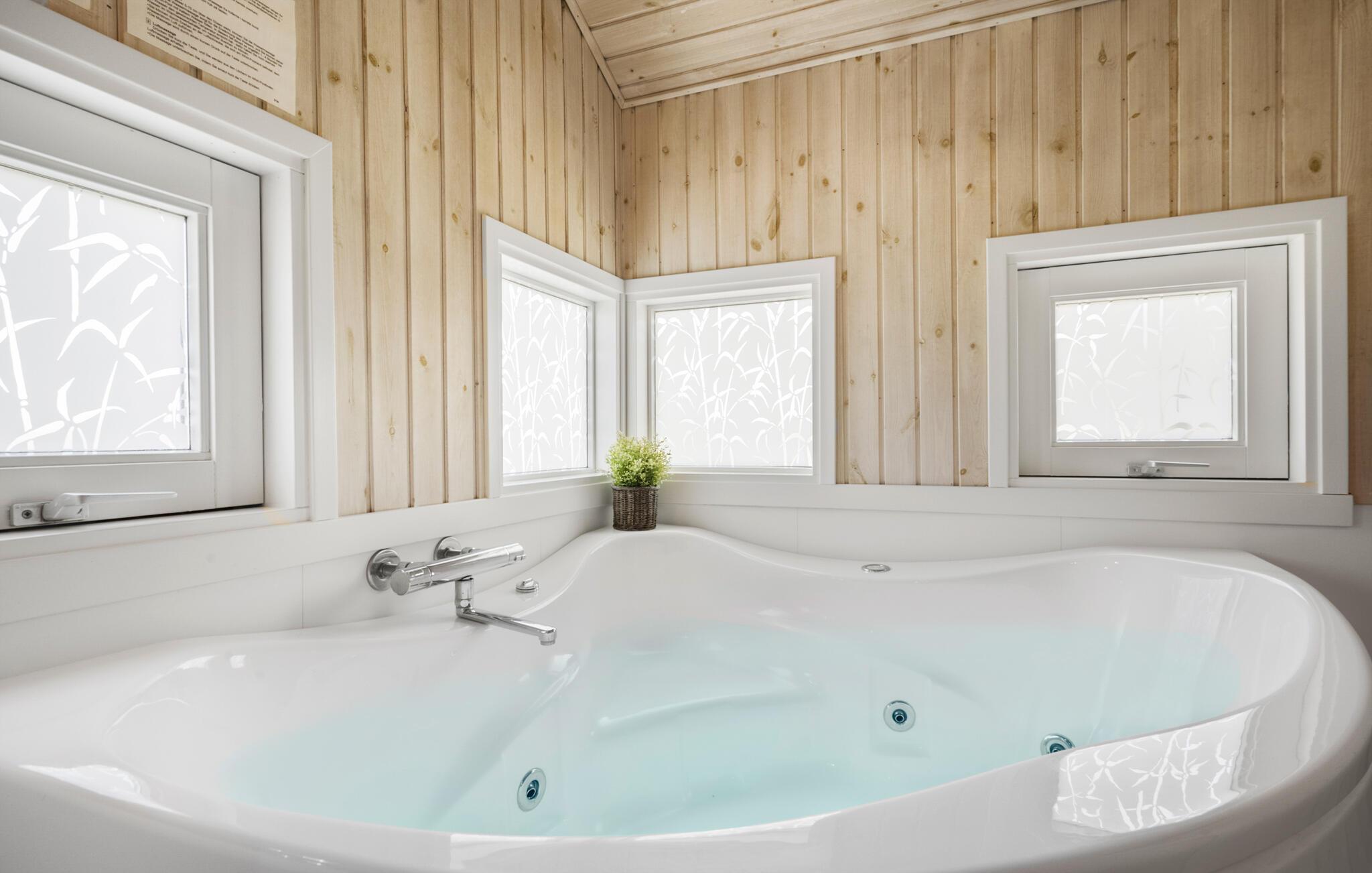 Hyggeligt feriehus tæt på Vesterhavet med spabad, sauna og indhegnet terrasse for en afslappende ferie.
