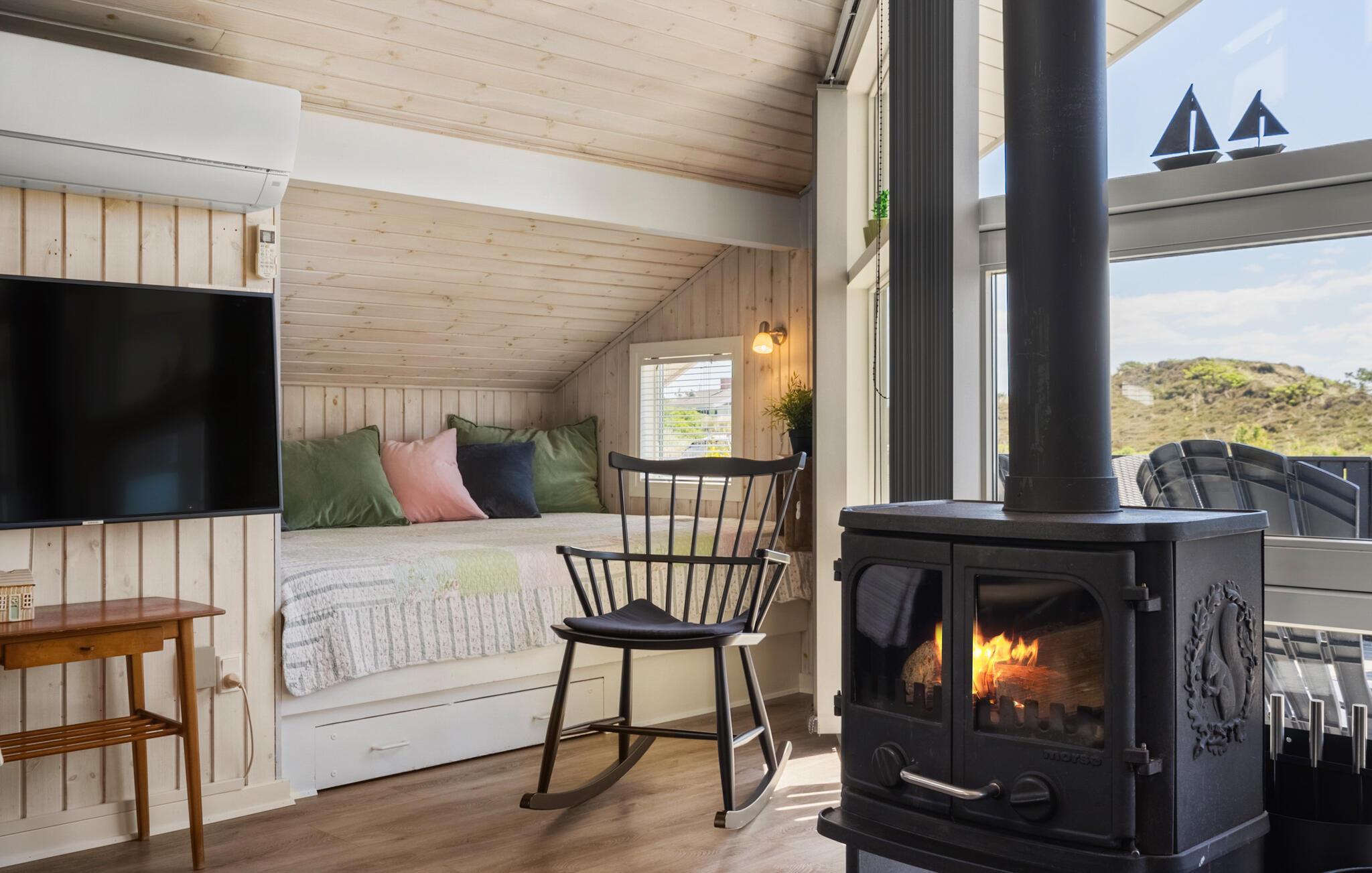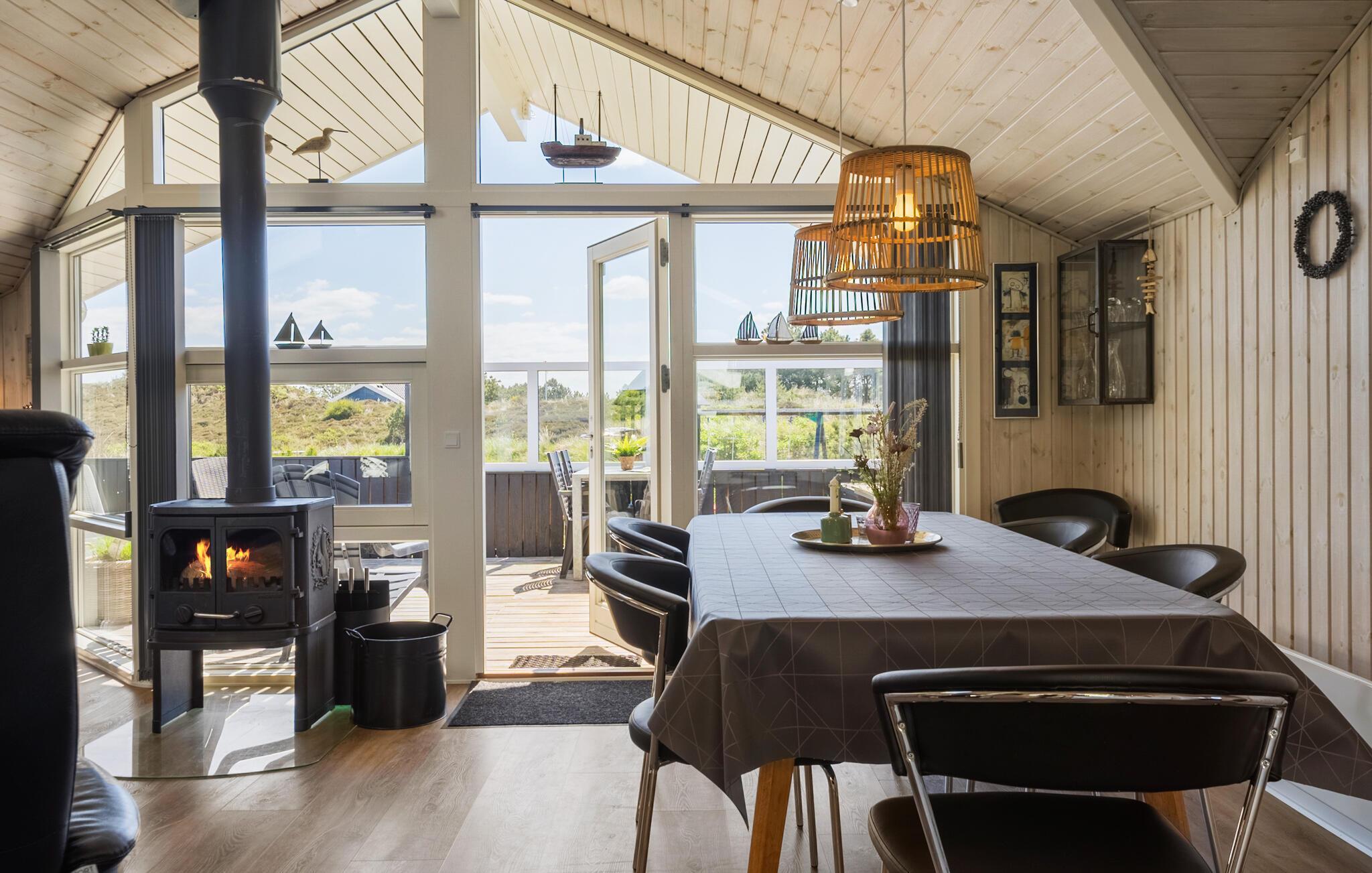 Dejligt og velindrettet feriehus på en let kuperet klitgrund kun 400 m fra Vesterhavet. Huset er løbende vedligeholdt og fremstår overalt pænt og moderne. De store vinduespartier i stuen gør, at huset virker lyst og venligt. I stuen finder I også alkoven, som kan bruges som soveplads eller bare til en hyggestund med en god bog ved siden af brændeovnen. Der er gode terrasser rundt om huset, den sydvendte er helt lukket, hvilket er ideelt, hvis I har mindre børn med. Fra huset er der kun få minutters gang til Bjerregård Strand, der indbyder til en dukkert i Vesterhavets salte bølger eller en gåtur langs vandet. Få hundrede meter fra huset mod nord ligger et stort fredet klitområde, som er særdeles velegnet til en gåtur i den friske, vestjyske havluft. Efter en god, lang dag i naturen, kan I afslutte hjemme i huset med wellness i spabadet eller i saunaen. Det internationalt kendte Legoland, ligger kun 90 km fra feriehuset.