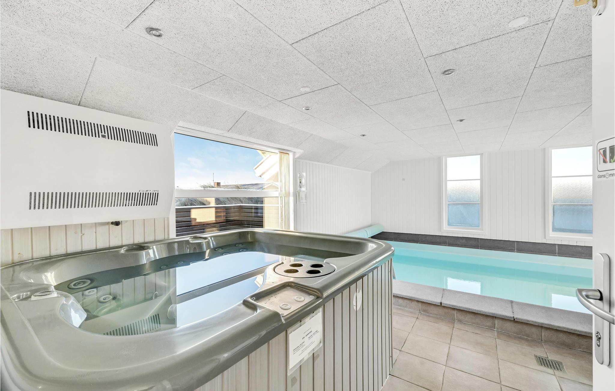 Dette hyggelige sommerhus ligger på en kuperet klit- og naturgrund ikke langt fra Vesterhavets brusende bølger, den hvide sandstrand og klitterne. Husets store attraktion, den dejlige wellnessafdeling byder ikke kun på en skøn swimmingpool, men også et stort fire personers spabad, der giver herlig undervandsmassage, adgang til den velgørende sauna og en bruser. Huset byder desuden på fire soveværelser med plads til i alt otte personer. Udenfor findes en stor sydvendt, afskærmet og delvist overdækket terrasse, hvor I kan nyde solen om dagen og på de lune sommeraftener er det oplagt med en hyggelig grillmiddag. To af dobbeltsengene er smalle (120x190 cm). Tag også på skønne cykel-/gåture i den smukke omkringliggende natur.