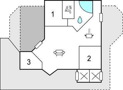 Badeværelse 8m2 (nr. 1) - WC. Varmt og koldt vand. Bruser