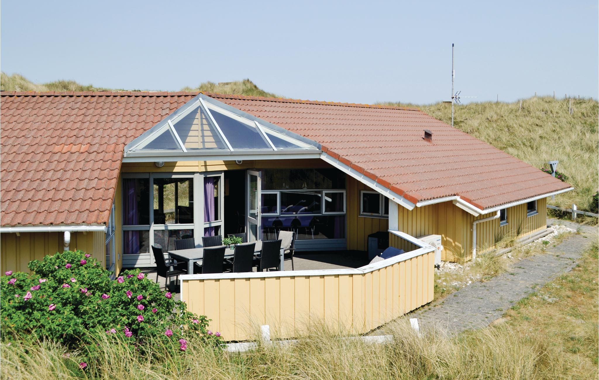 På den sydligste del af Holmsland Klit, midt i et af Danmarks mest elskede ferieområder, ligger Bjerregård Strand med den hvide sandstrand og Vesterhavets forfriskende bølger. Her bag den høje klitrække, for enden af en blind vej, ligger dette skønne sommerhus på en stor klitgrund med dejlige solterrasser og gode læmuligheder. Huset er hyggeligt indrettet med stue og køkken i åben forbindelse med hinanden, således at der er et dejligt lysindfald fra alle sider. Der er plads til otte personer i de fire soveværelser, som er fordelt i begge ender af huset. Til huset hører to badeværelser, hvoraf det ene er indrettet med spa og adgang til sauna. Et ideelt sommerhus til hele familien, hvor husdyr også er velkomne, så tænd op i brændeovnen og lad feriestemningen sænke sig.