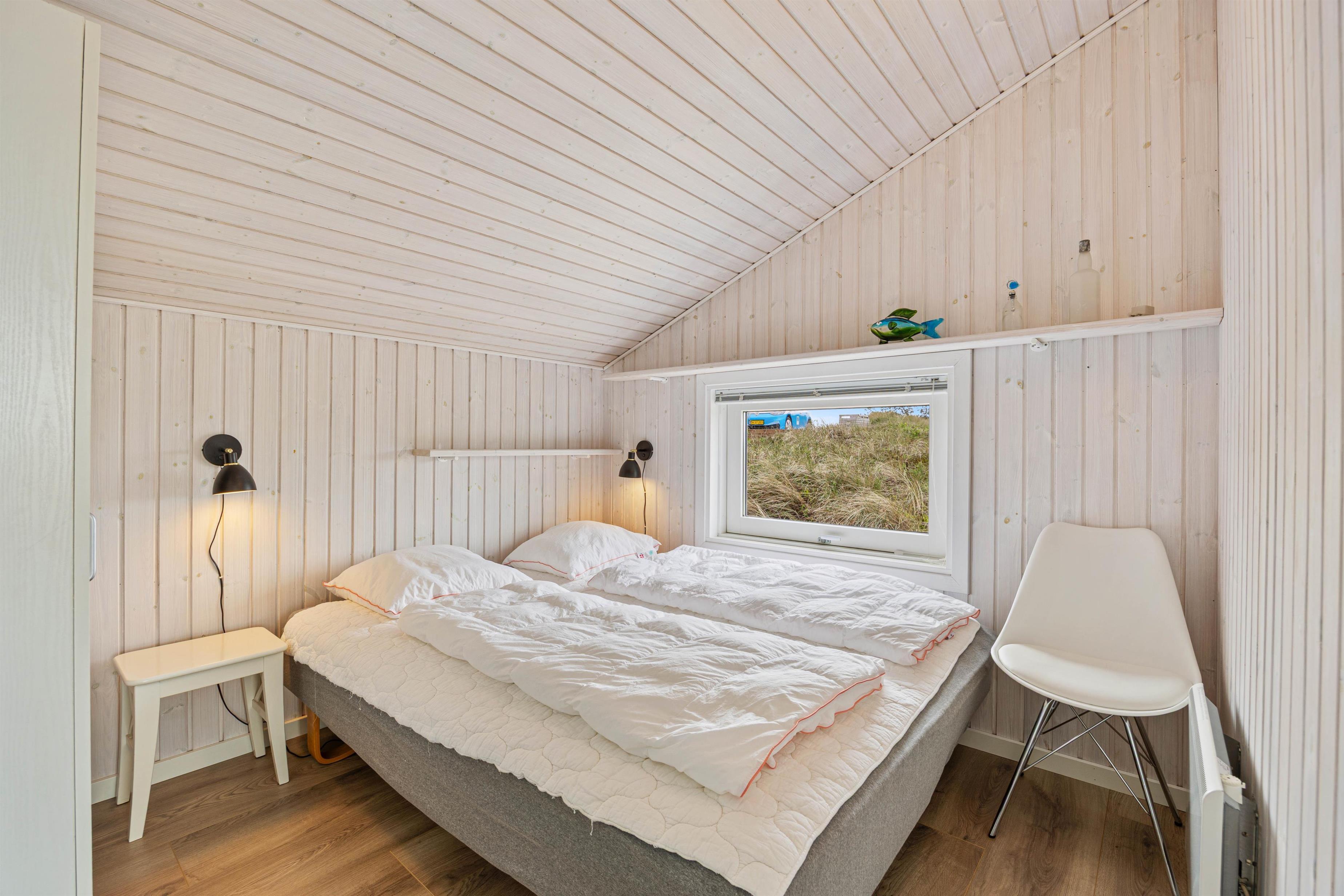 Der er plads til op til 6 gæster i det lyse og venlige feriehus på 80 m². Hunden er også velkommen til at tage med, og sammen kan I se frem til lange gåture på Vesterhavsstranden, som I allerede kommer til efter blot 500 meter.