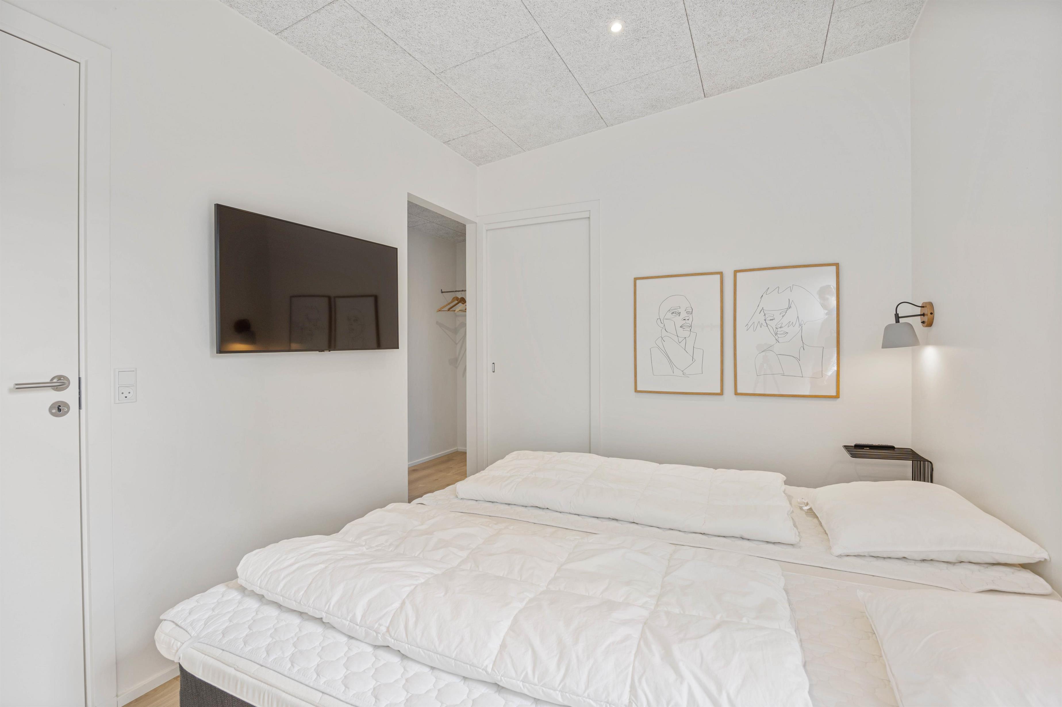 De 8 sovepladser er fordelt på 4 soverum. 2 af soverummene er med dobbelt seng og har begge privat badeværelse og walk-in closet.