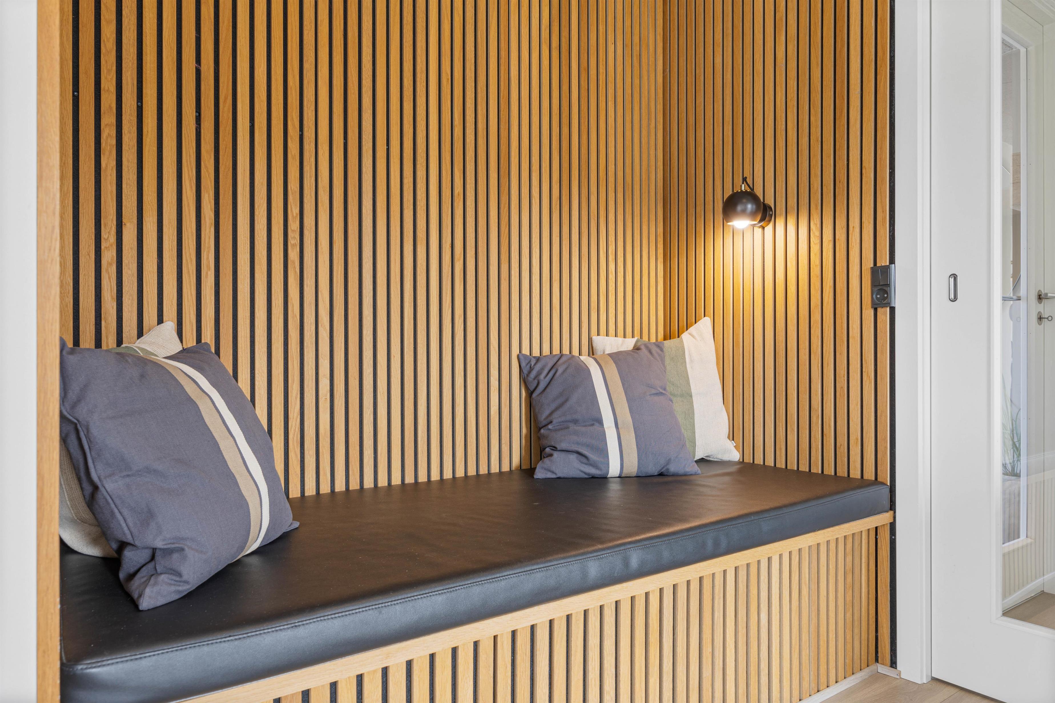 Luksushusets hjerte må tvivl være det store lyse køkkenalrum, hvor det flotte åbne køkken har udsigt over stuen med brændeovnen, som lægger op til mange hyggelige stunder med familie og venner. Det 5+ stjernede sommerhus byder på en række faciliteter, som er med til at skabe en vellykket ferie, her kan bl.a. nævnes vaskemaskine, tørretumbler, opvasker, gasgrill og ikke mindst den energibesparende varmepumpe.