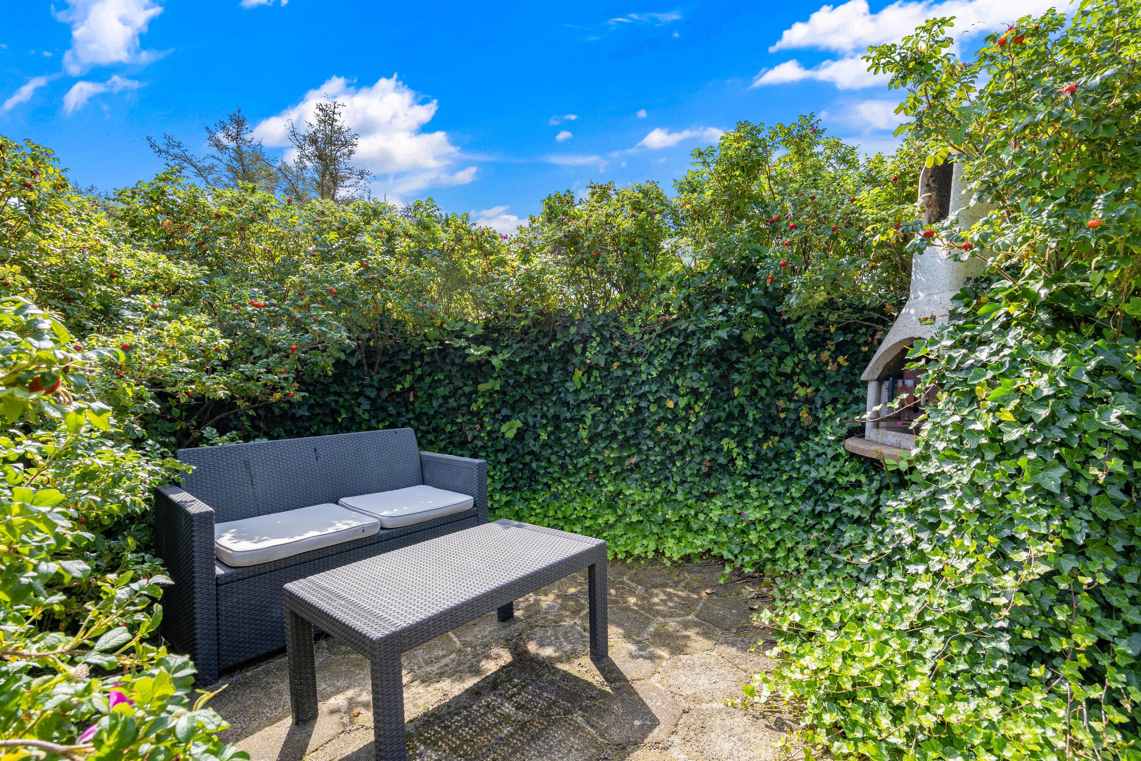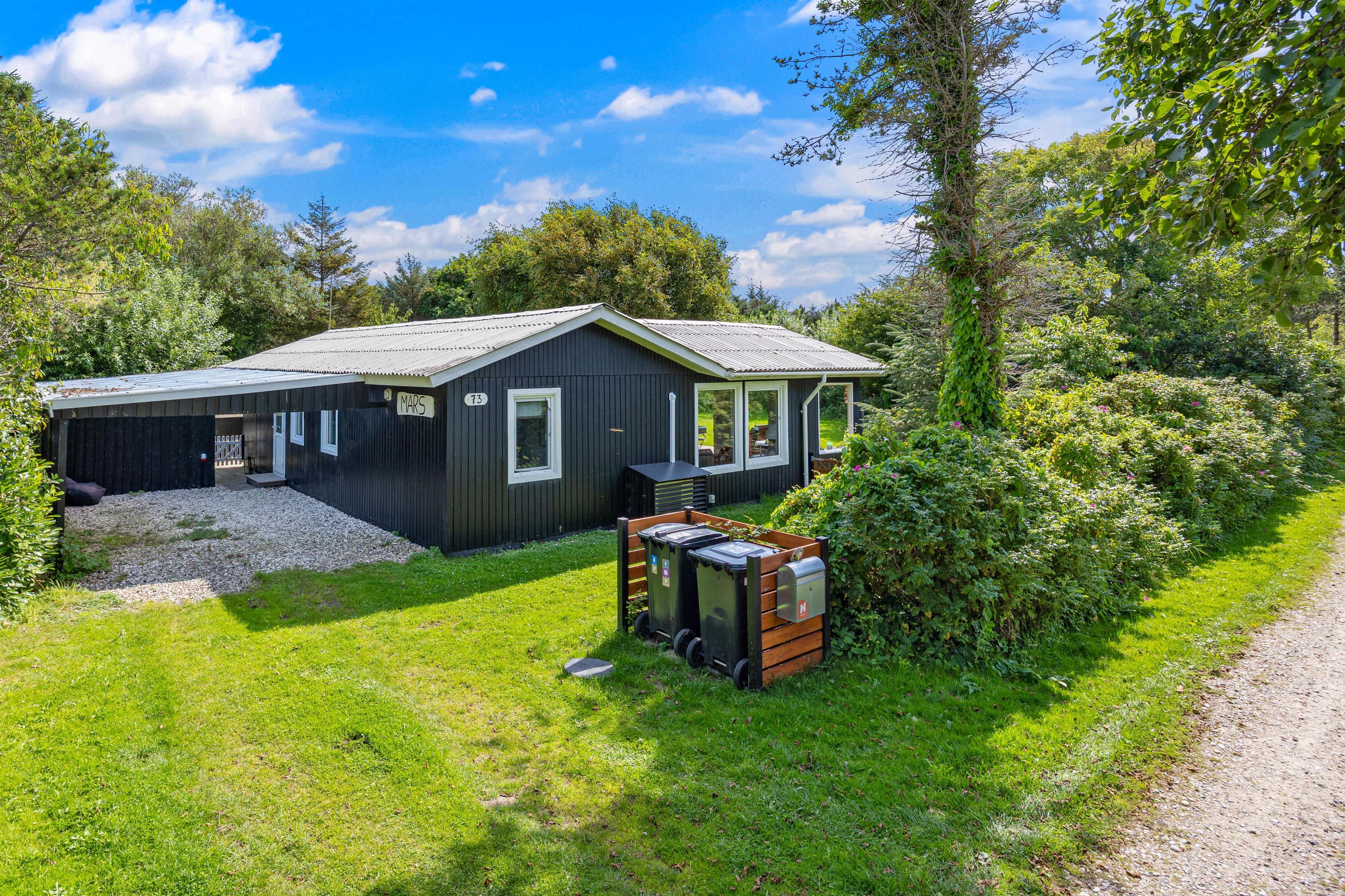Sommerhuset i Bjerregård er omgivet af en rummelig 1202 kvadratmeter stor, lukket havegrund, som er ideel til hele familien. På den delvist overdækkede terrasse kan I nyde solen i de komfortable havemøbler og liggestole eller tilberede aftensmaden på grillen. Med de mange buske og træer, der omgiver ejendommen, er I helt uforstyrret her.
