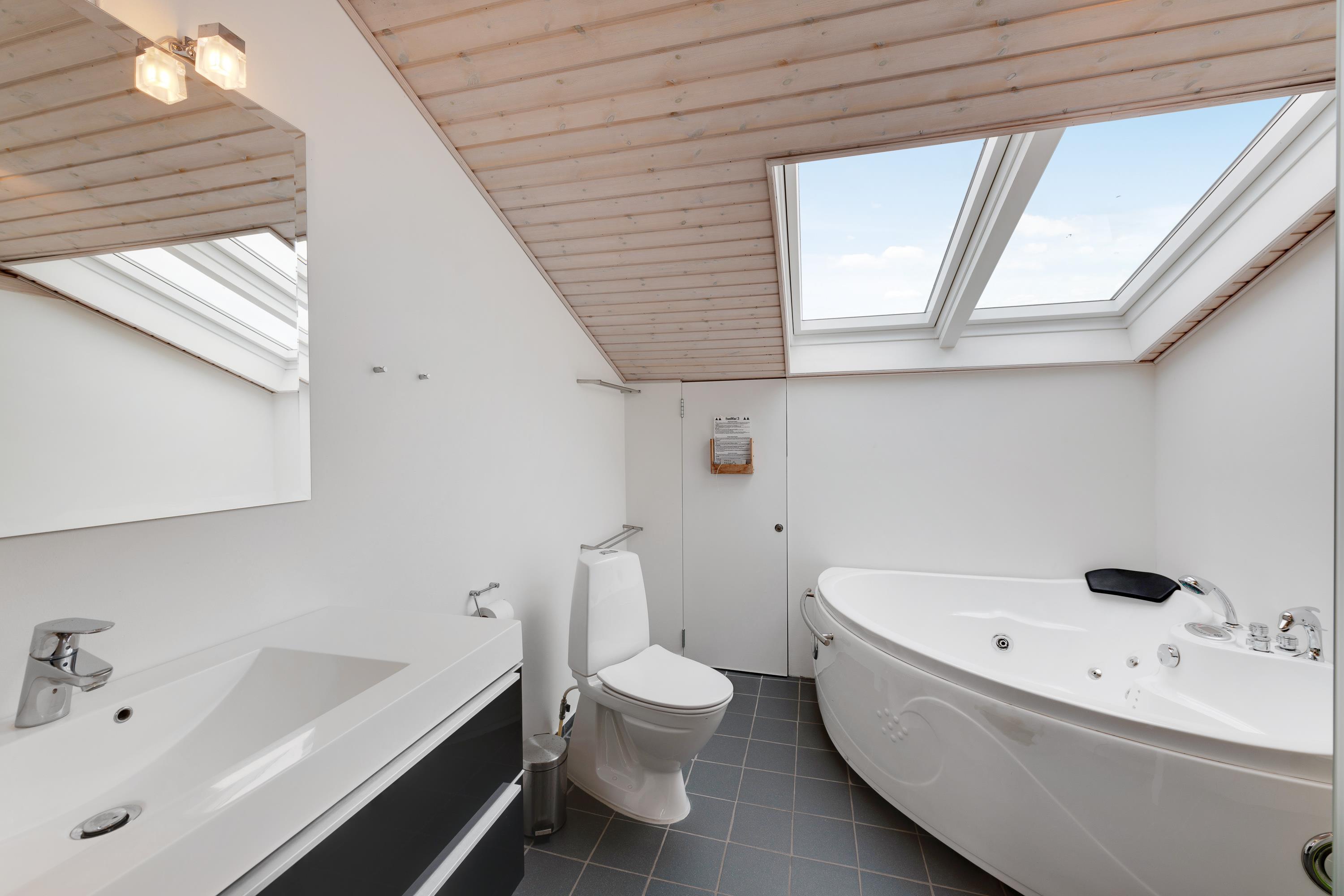 Der er 2 badeværelser, hvoraf det ene badeværelse rummer både spabad og sauna. Her kan I rigtig nyde feriestemningen, når I får tændt op i boblebadet og mærker varmen fra saunaen efterfølgende.