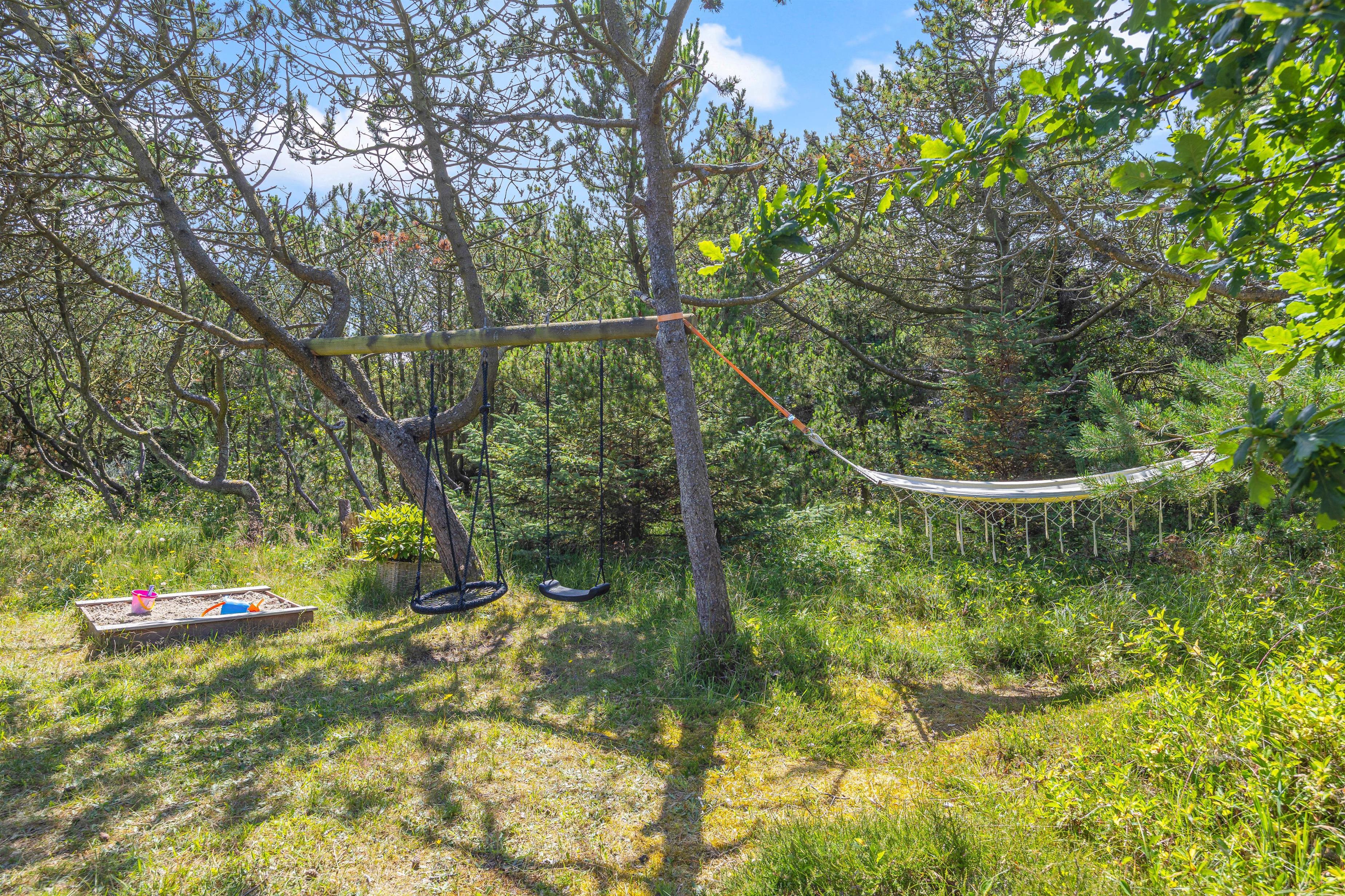 Dette indbydende feriehus er beliggende på en naturgrund i Bjerregård, ikke langt fra det brusende Vesterhav. Her er der god mulighed for både privatliv og læ for både børn op voksne, og har man hund med, er der mange gode muligheder for skønne traveture i området.