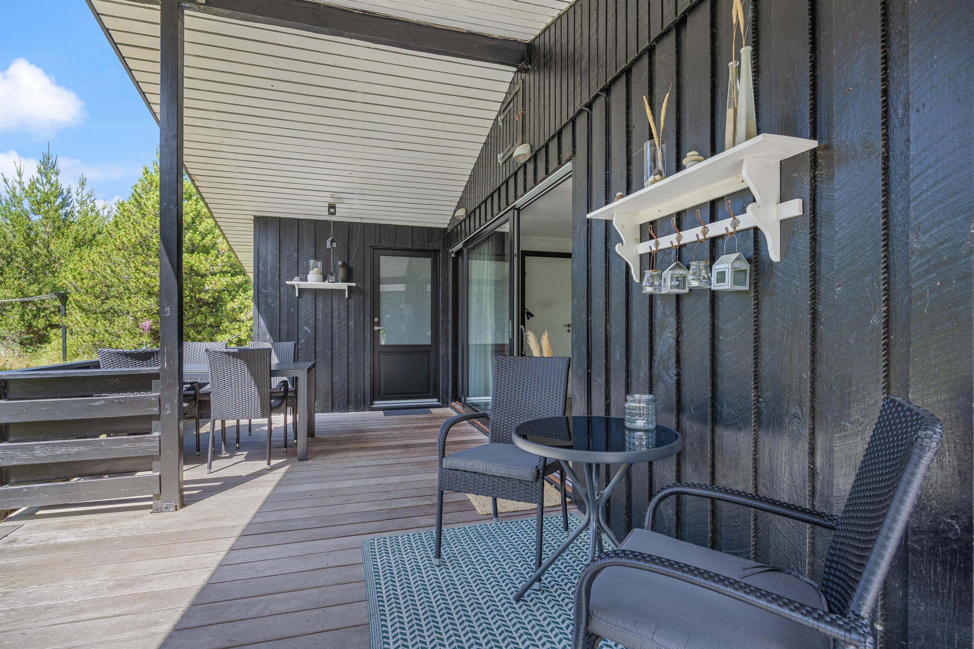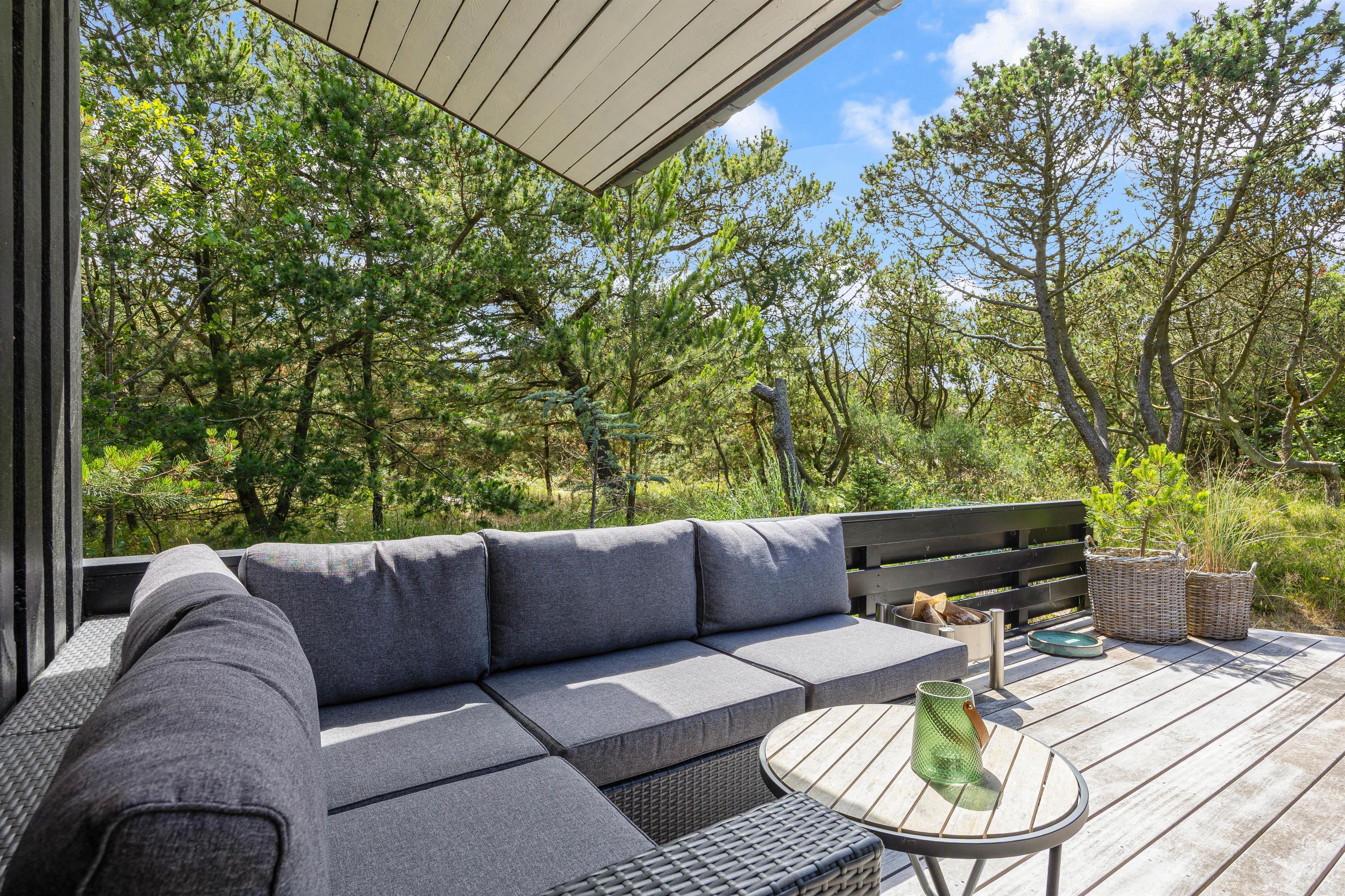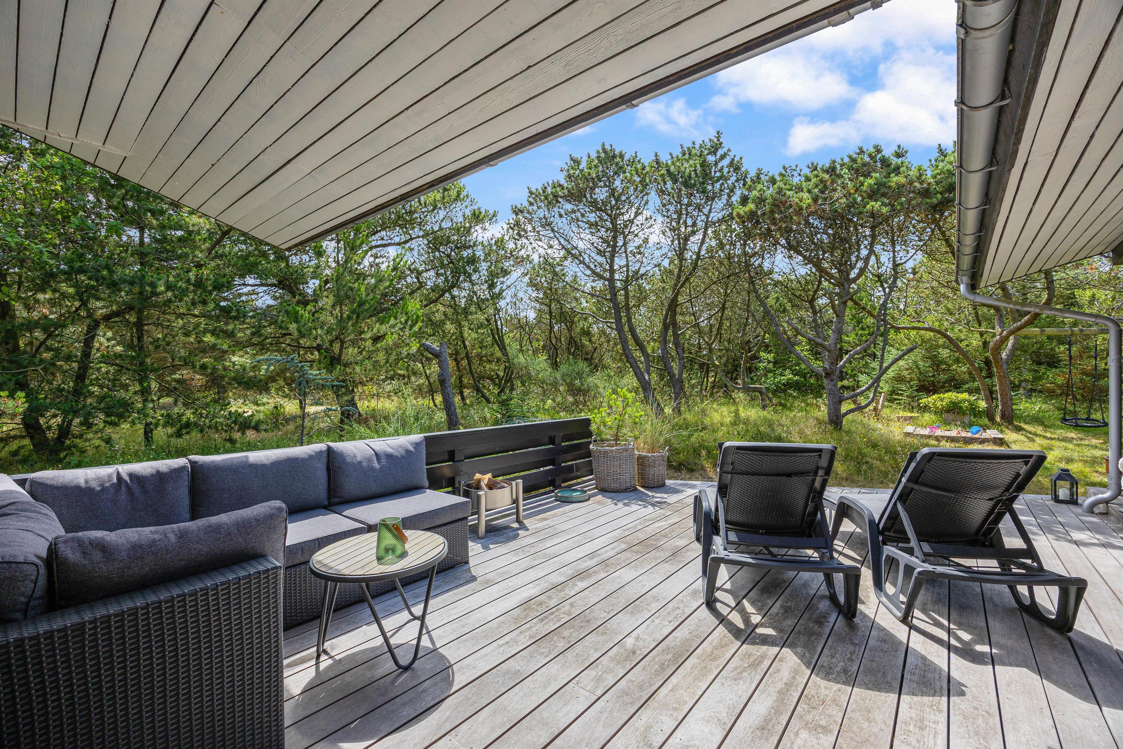 Der er kommet nye, skønne terrasser til sommerhuset i 2022, som er delvist overdækket mod vest, hvilket er ideelt til hyggelige grillaftener.