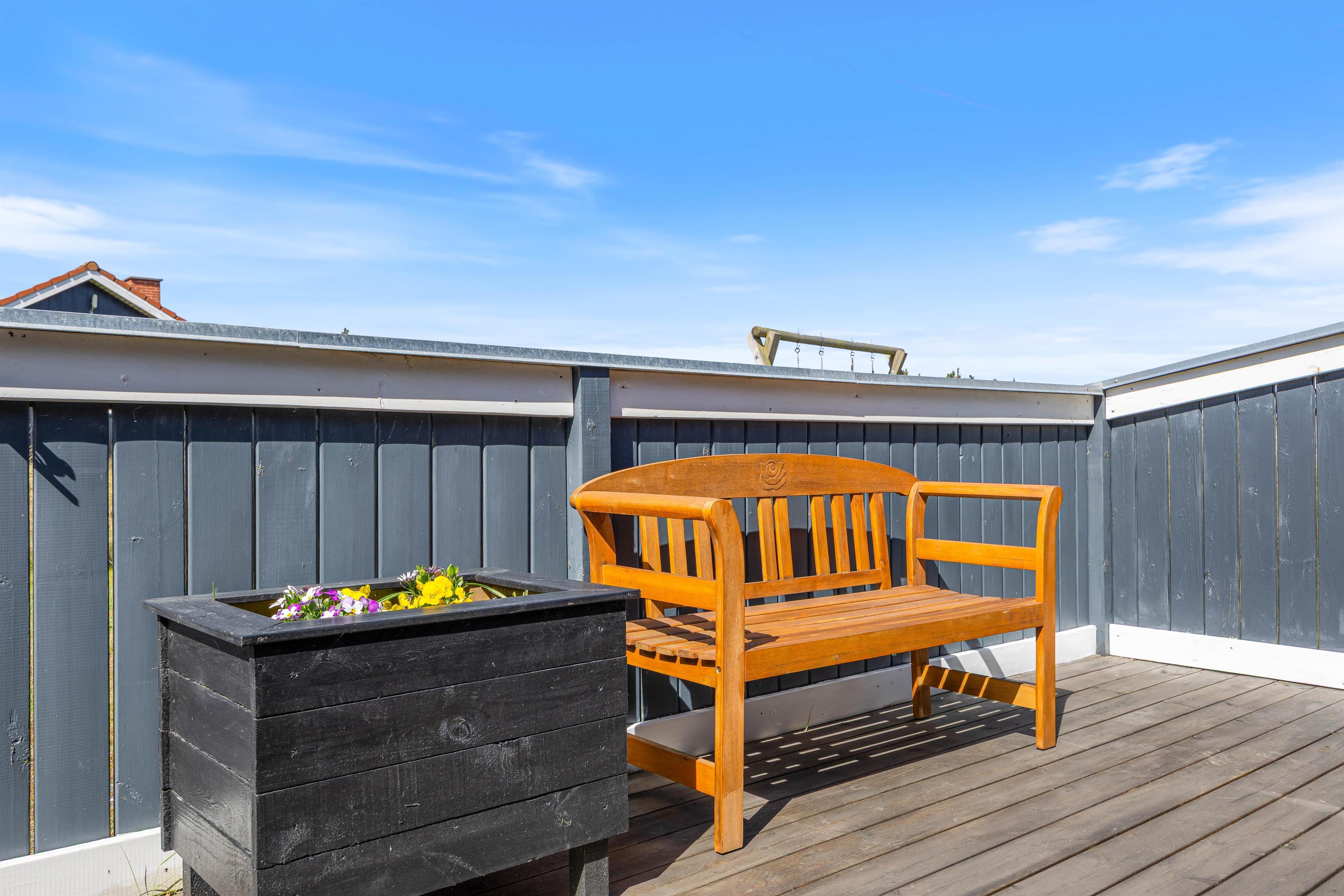 I kan nyde udelivet i den friske havluft på den åbne, delvist afskærmede og overdækkede terrasse ved sommerhuset. Her står komfortable havemøbler, liggestole og grill klar til jer, og som et ekstra plus er der også en udesauna. Terrassen er godt beskyttet mod vind og vejr, så I altid kan finde en rolig plet, hvor I kan nyde en kop kaffe. Imens kan børnene brænde krudt af i gynger eller sandkasse på den vestjyske naturgrund.