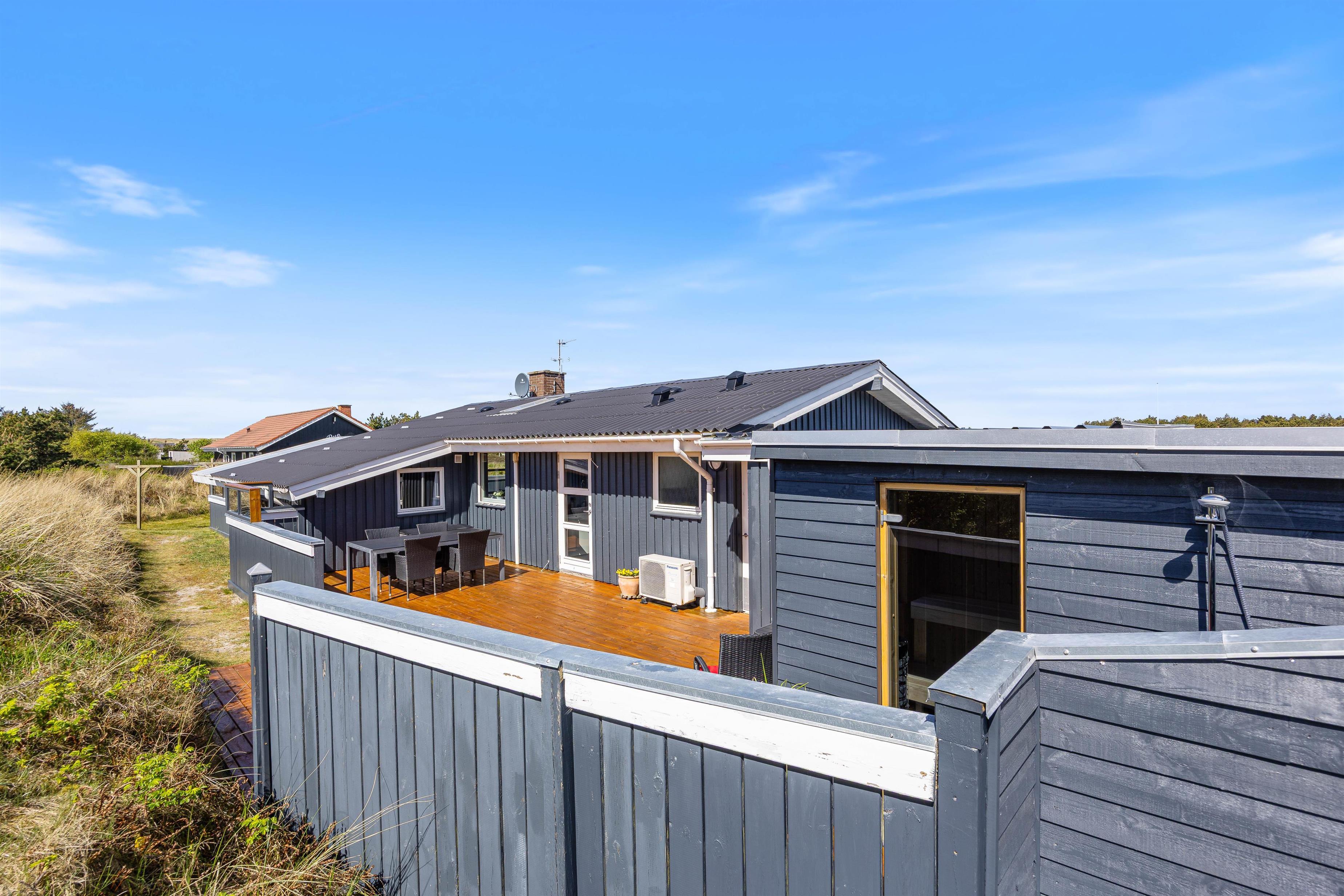 På en aftentur til stranden kan I nyde solnedgangen i Vesterhavet, og hjemme ved feriehuset igen kan I skylle sandet af under udebruseren og derefter blive godt gennemvarme i udesaunaen.