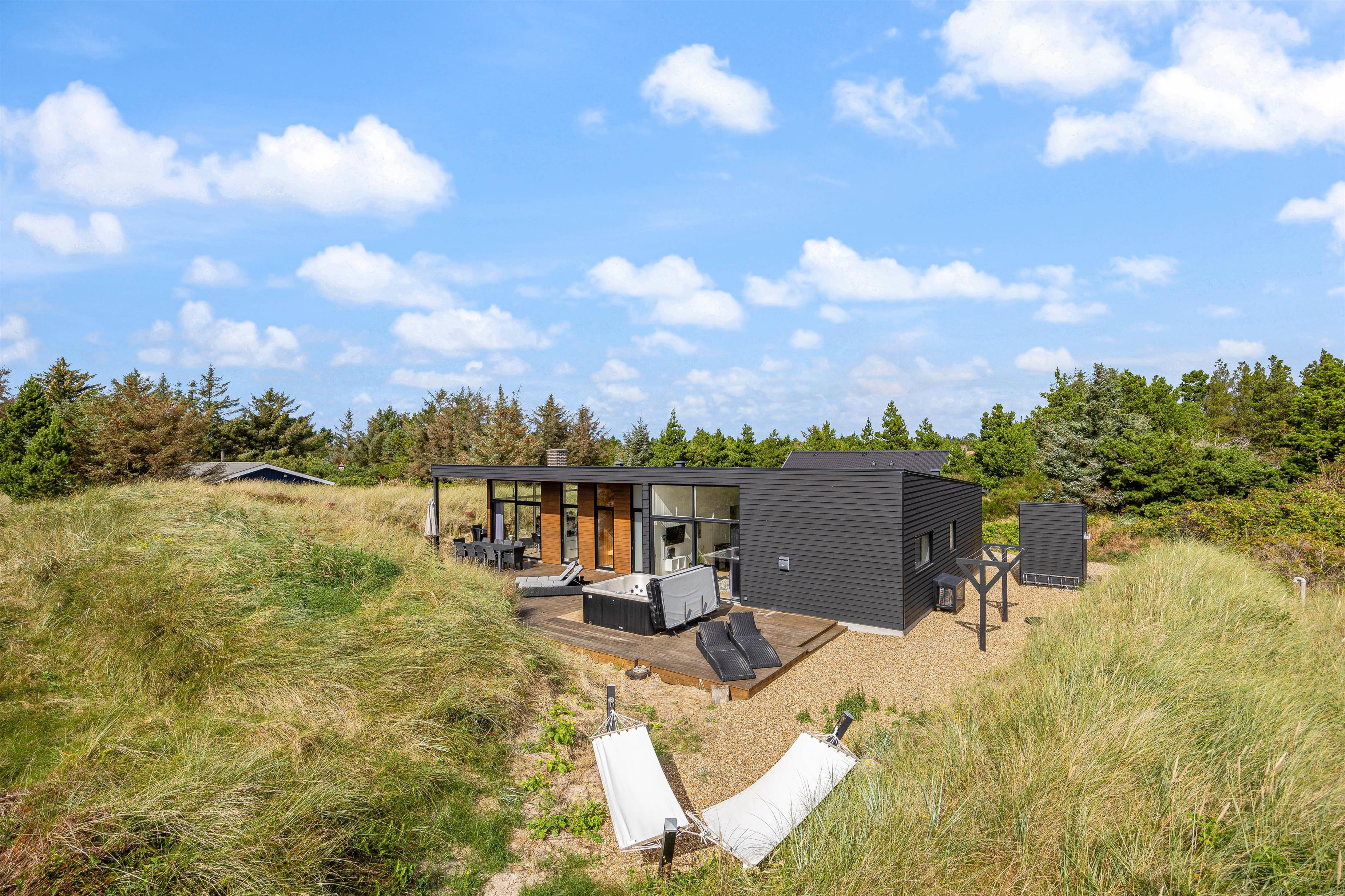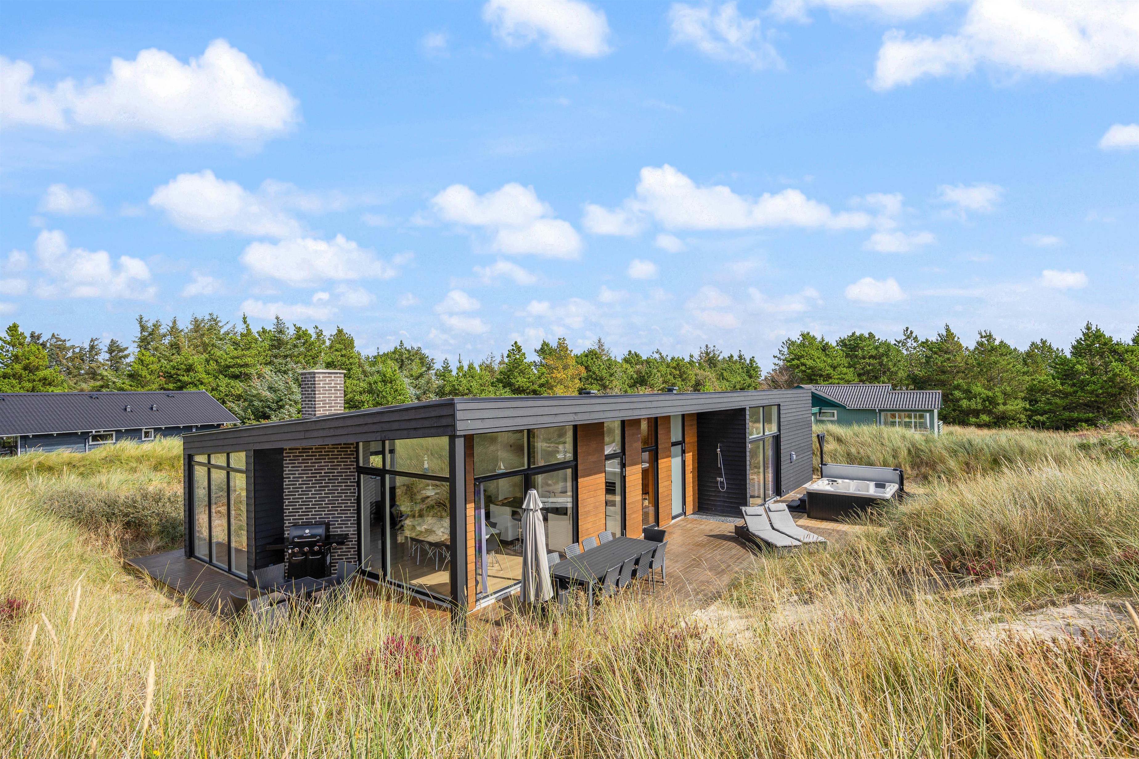 Dette indbydende og moderne feriehus er på 137 m2 og opført i 2020. Lys og smagfuld indretning med sans for detaljen, samt i de bedste materialer. Her er plads til 8 personer, fordelt på 4 store værelser, heraf 2 med dobbeltsenge og 2 værelser med hver 2 enkeltsenge.