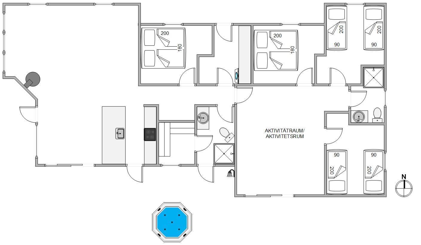 Dette femstjernede aktivitetshus byder på leg, samvær og afslapning i særklasse for hele familien. Aktivitetsrummet lægger op til familieturneringer i bordfodbold og dart eller prøv et af de mange spil på husets PlayStation i den hyggelige sofagruppe. Det lynhurtige internet på 1000/1000 Mbit gør det ligeledes nemt at være on-line og surfe på nettet.