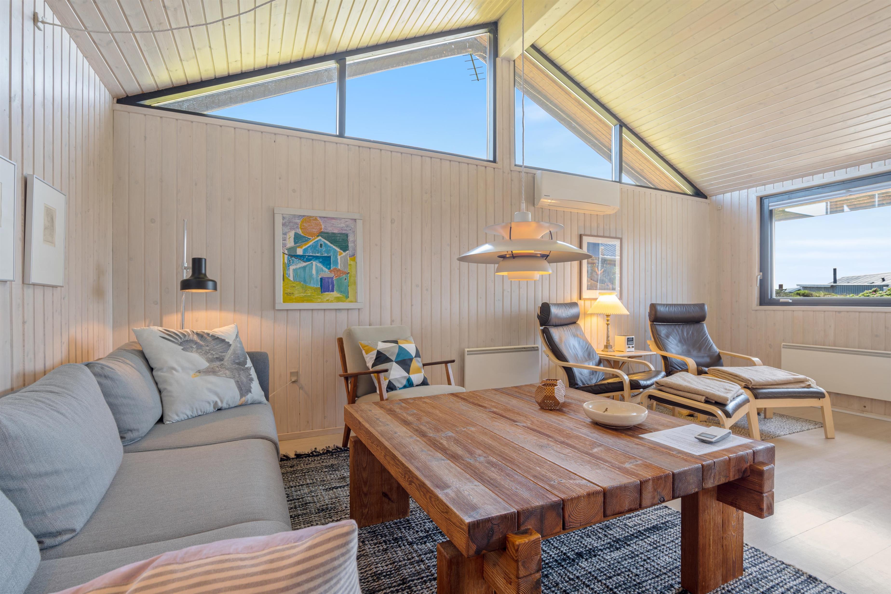 Fra hele sommerhuset har man udsigten til den storslåede natur i Bjerregaard, hvor der kun er få minutters gang til havet med den skønne badestrand, som indbyder til hyggelige stunder med familien på en varm sommerdag. Det brusende Vesterhav er dog et besøg værd året rundt, så hvis vejret ikke viser sig fra den bedste side, kan det alligevel klart anbefales at gå en tur til vandet.