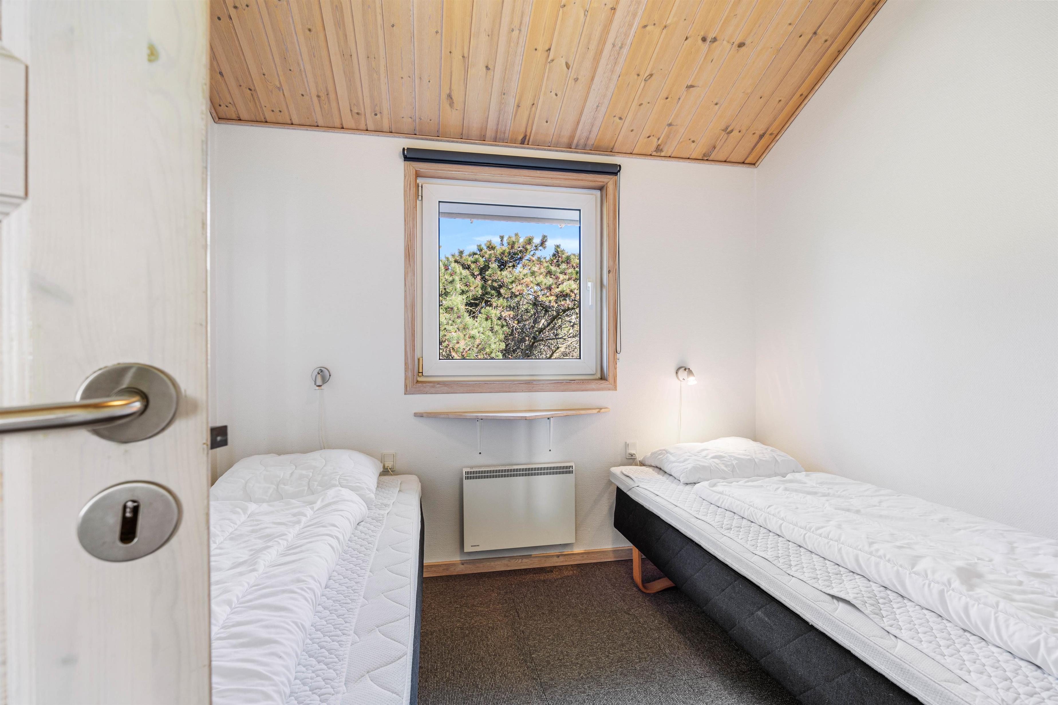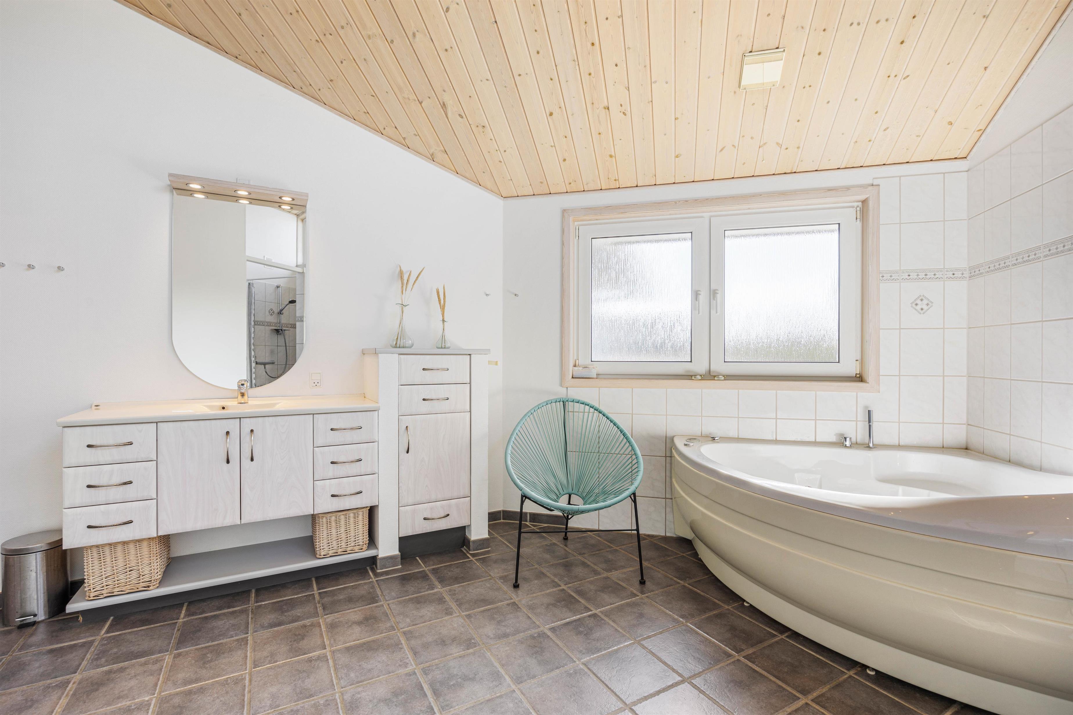 Her er 4 rummelige og indbydende soverum (2 med dobbelt- og 2 med enkeltsenge) med komfortable boxmadrasser og et stort spa-badeværelse med sauna, som gør sommerhuset til den perfekte ramme om den vellykkede og afslappende ferie for 8 personer. Sommerhuset har hele 2 badeværelser, så der ikke opstår kø om morgenen. Begge badeværelser er udstyret med gulvvarme. Her er desuden mulighed for at vaske lidt tøj eller håndklæder i løbet af ferien, da sommerhuset råder over vaskemaskine og tørretumbler.